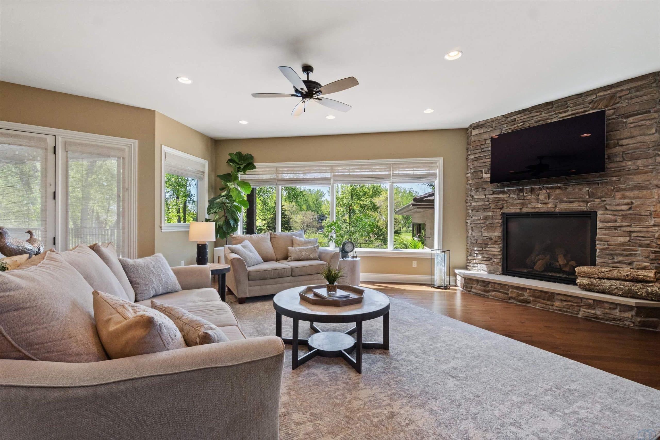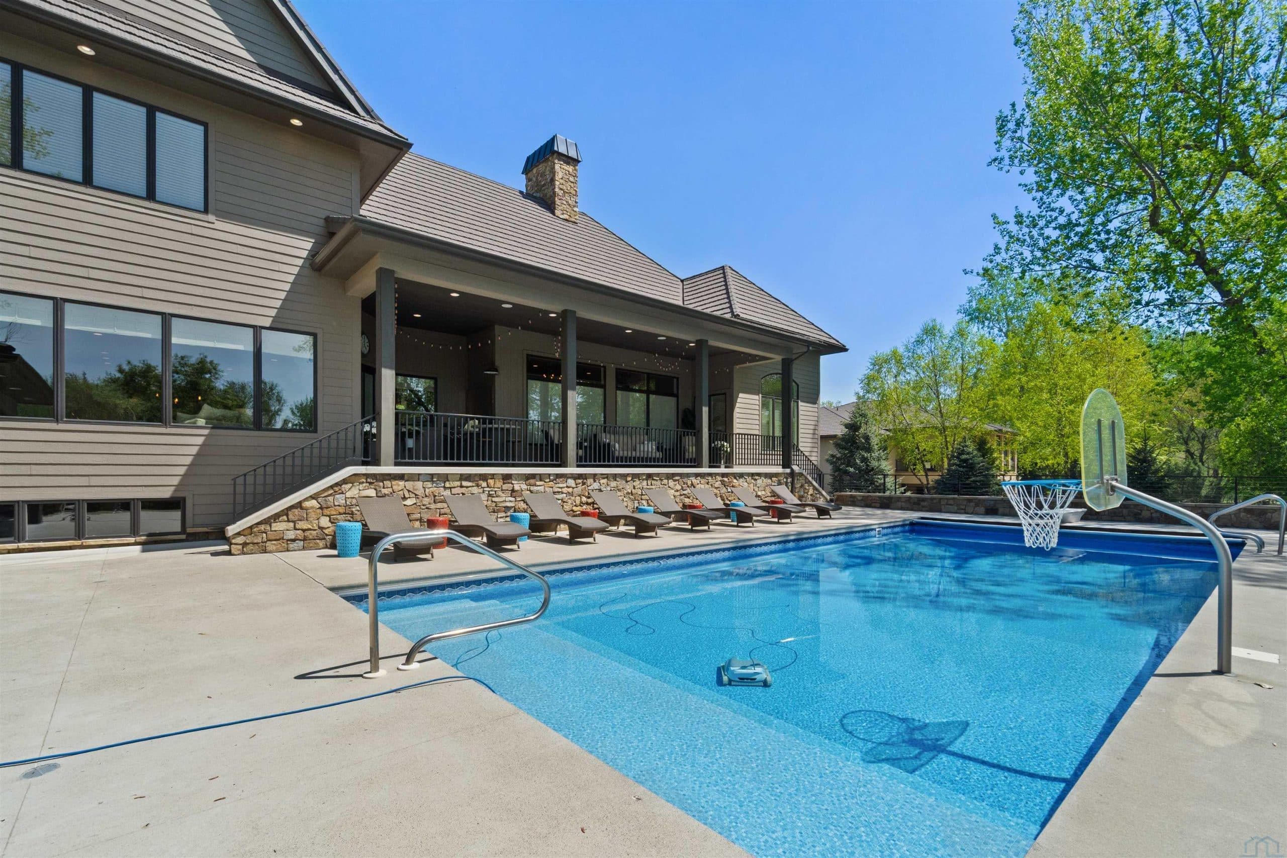 Description: 6 BD 7 BA 1 1/2 Story Home located in Dakota Dunes directly on Hole 15!!! Walk in to this truly amazing custom built home with close to 8,000 sq ft of finished, detailed perfection! Design is in the detail on this one!! Beautiful and functional around every corner! Detailed to perfection and spotlessly cared for through and through! This beautiful home with amazing views and great elevation is located just off The Dakota Dunes Golf Course but has plenty of privacy. The spacious main floor includes formal living and dining space, gourmet kitchen with large island and pass through pantry, large family room, master suite to die for with luxurious bath and large closet. The laundry/drop zone off the garage is well thought out, spacious and very well organized! The upper level has an additional living area, two mini suites and a convenient second laundry room. Just when you think you've seen it all, the lower level has a full bar, entertainment area, family room, workout room, two more bedrooms and tons of storage space. The resort like backyard is a get away in itself!! 20x46 in ground, salt water pool and outdoor cabana with bath and every amenity you can think of!