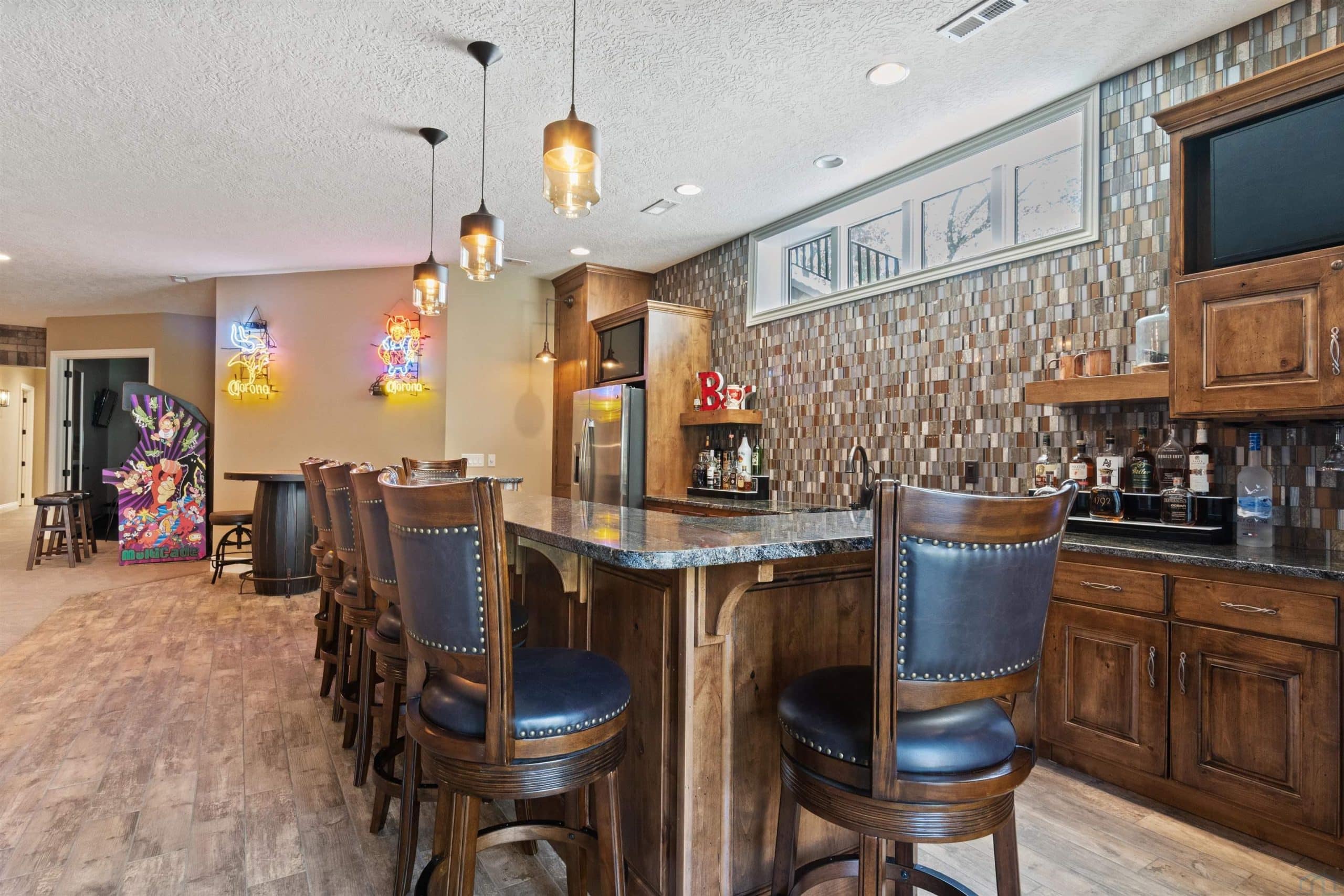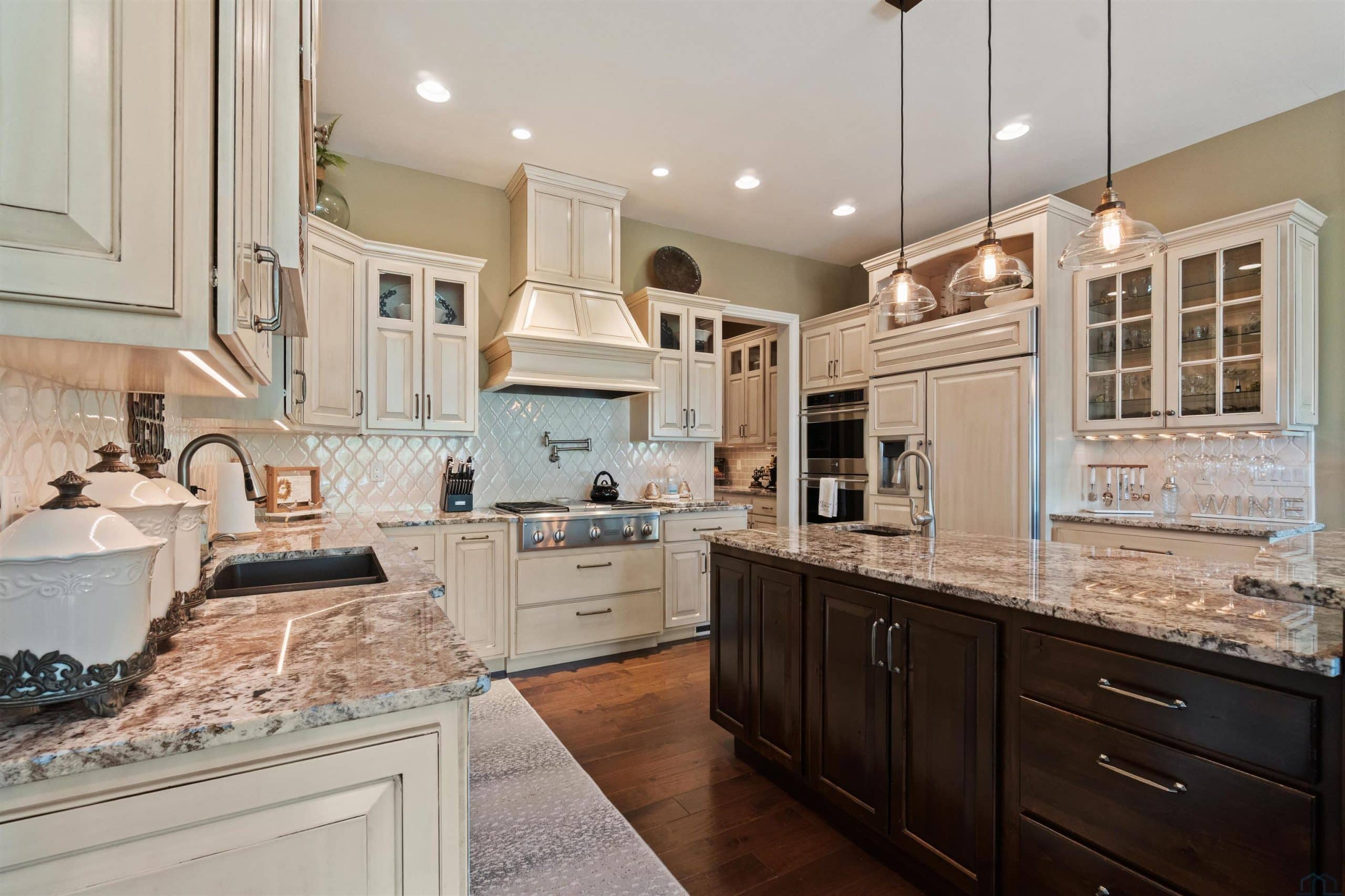 Brick AccentBuilt-insCrown MoldingDeckEat-in KitchenFireplaceFoyerFrench DoorsGarage Door OpenerGranite/QuartzHardwood FloorsHeated FloorKitchen IslandLawn Sprinkler SystemLoftMain Floor LaundryMaster BathMaster WI ClosetOversized GaragePatioPatio - Stone/PaverPool-In GroundPorchWalk-in PantryWalk-outWet Bar