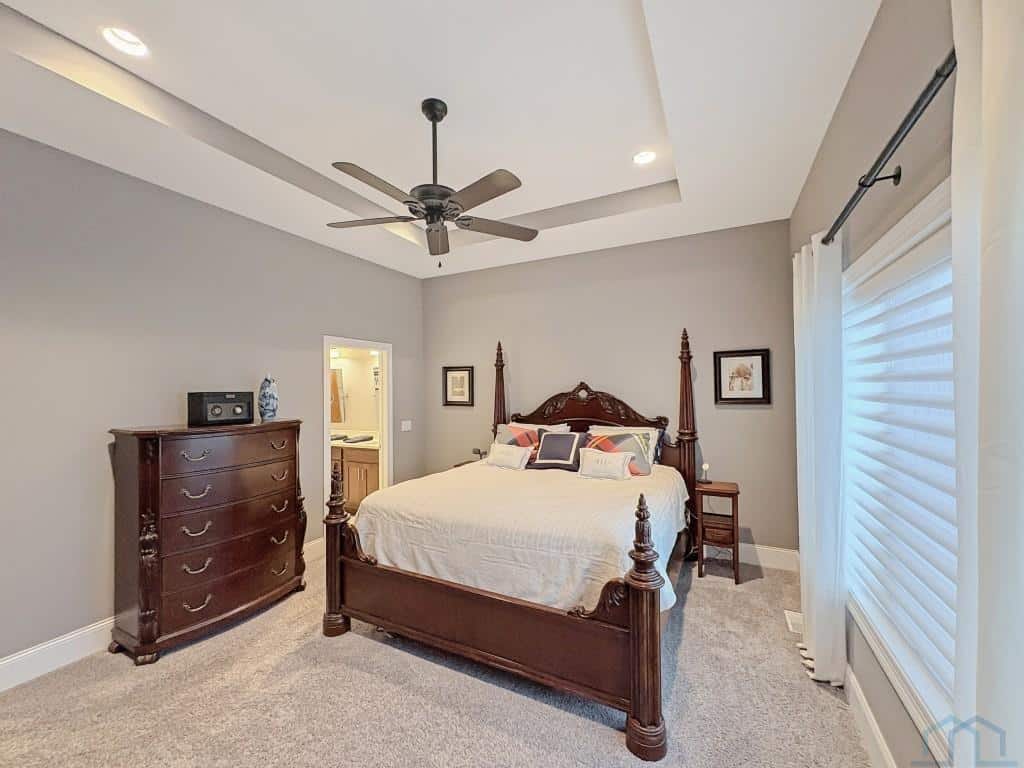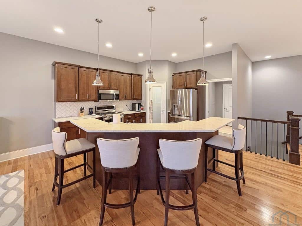 This is a meticulously cared-for one owner property. Built by Kelly Construction, this ranch home has 2076 sq ft on the main level and a beautifully finished basement. Hardwood floors give you a warm welcome into the home. Open concept floorplan that works well for nearly everyone! The hardwood floors continue through the living room, kitchen and dining spaces. A beautiful gas fireplace is situated in the living room corner. The kitchen has gorgeous quartz countertops, an island for easy prep and barstool seating, stainless steel appliances, including a gas cooktop, are all included with the home. The dining space is open to the kitchen and has a sliding door access to the covered patio. The primary suite is nicely sized, coffered ceiling, windows to the backyard. A beautiful primary bathroom offers 2 sinks for easy morning schedules, heated tile floor, a tile walk in shower plus a large 5x12 walk in closet with SOS organizers. Down the hallway, there are 2 more bedrooms plus a full bath in the hallway with great tilework. The laundry room is on main with a utility sink, several cabinets and a closet. Washer and Dryer are included. Great use of space for storing items. In the lower level, you will find a wide open family room with a 2nd gas fireplace and linear wet bar. Perfect for game day or holiday gatherings! The basement has barely been used and shows that way! Bedrooms 4 and 5 are both nice sized bedrooms; bedroom 5 has a larger than expected WIC. There is a hallway bath with a tub/shower in the lower level as well. The plan allows for generous storage plus plenty of room for a work out area, if desired. Triple car garage. New roof in 2018. Flat yard with sprinklers. Gas line to the patio for your grill. Beautiful landscape with curbing. No detail was overlooked for this property. Take a look for yourself!
