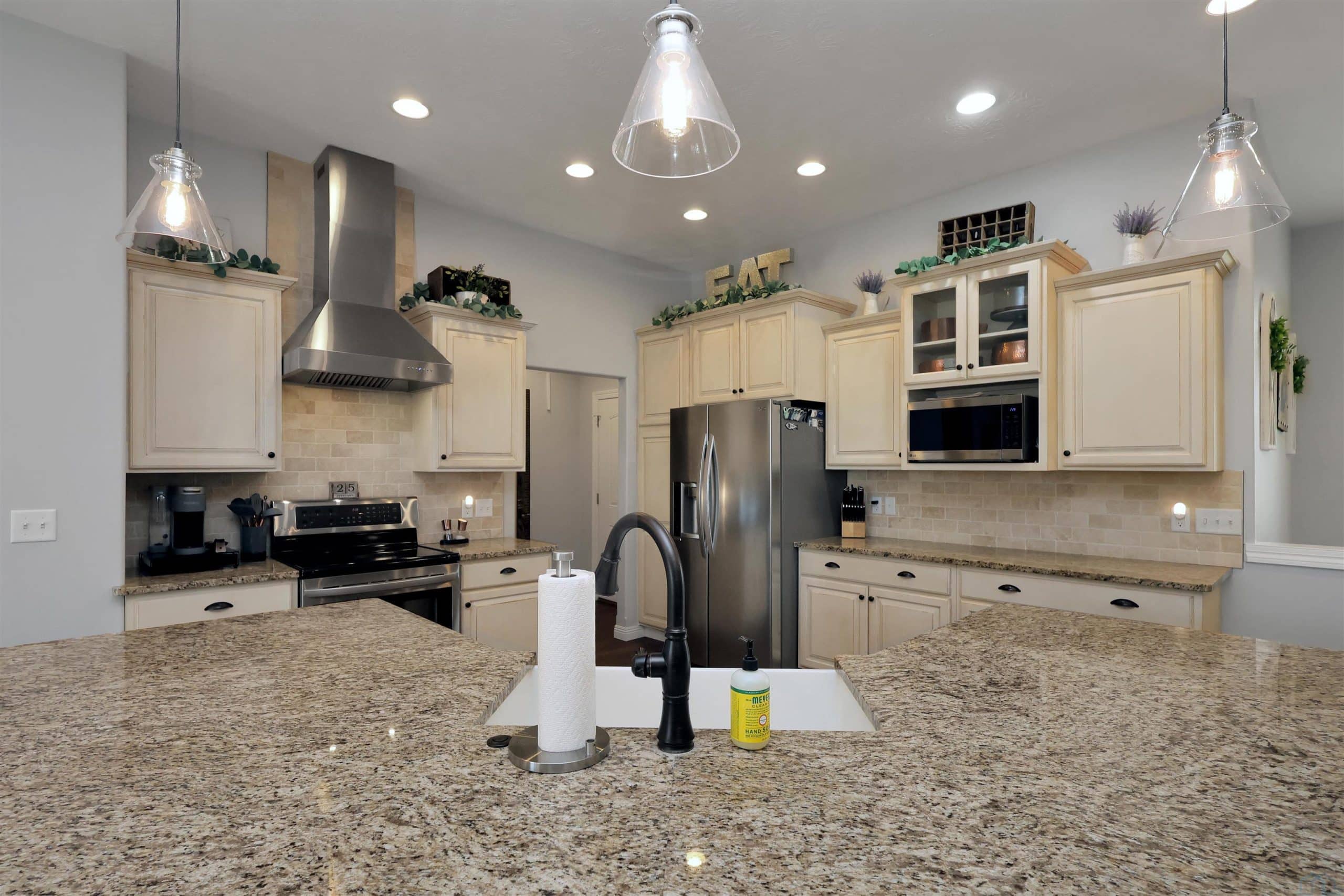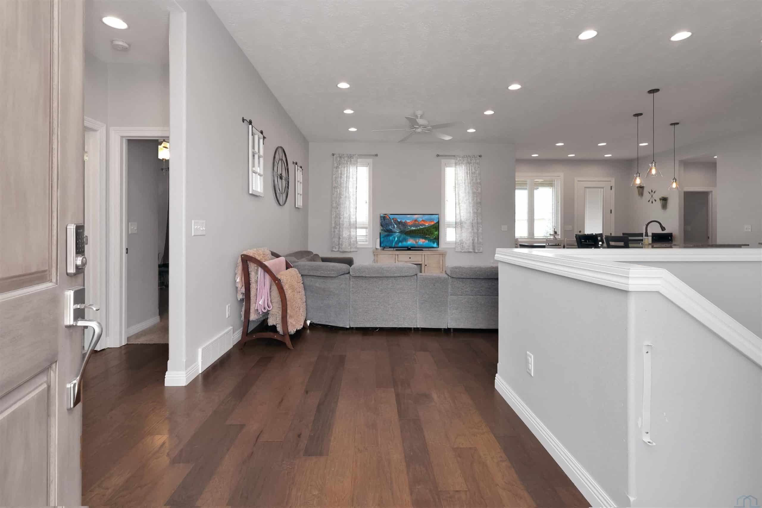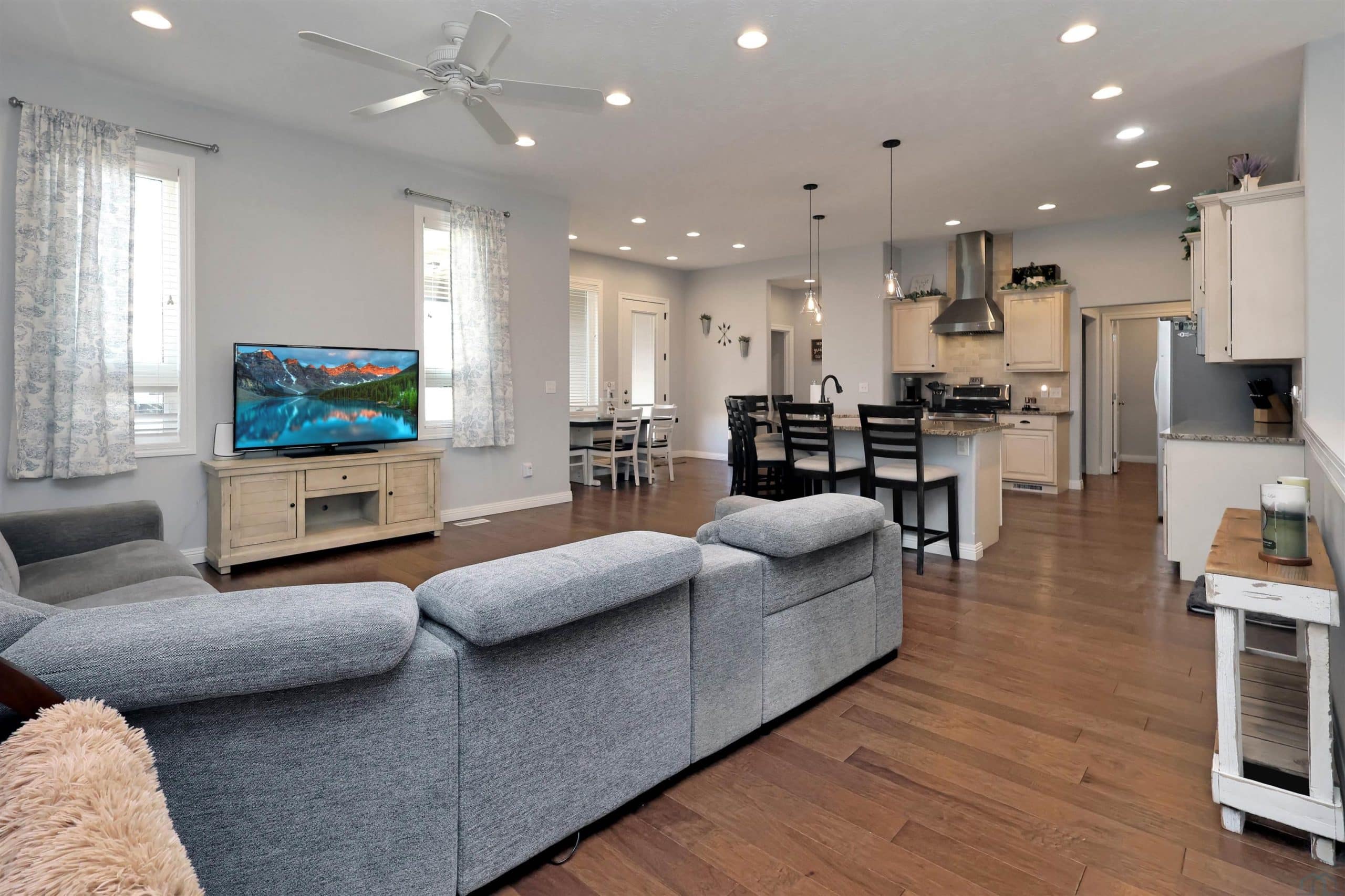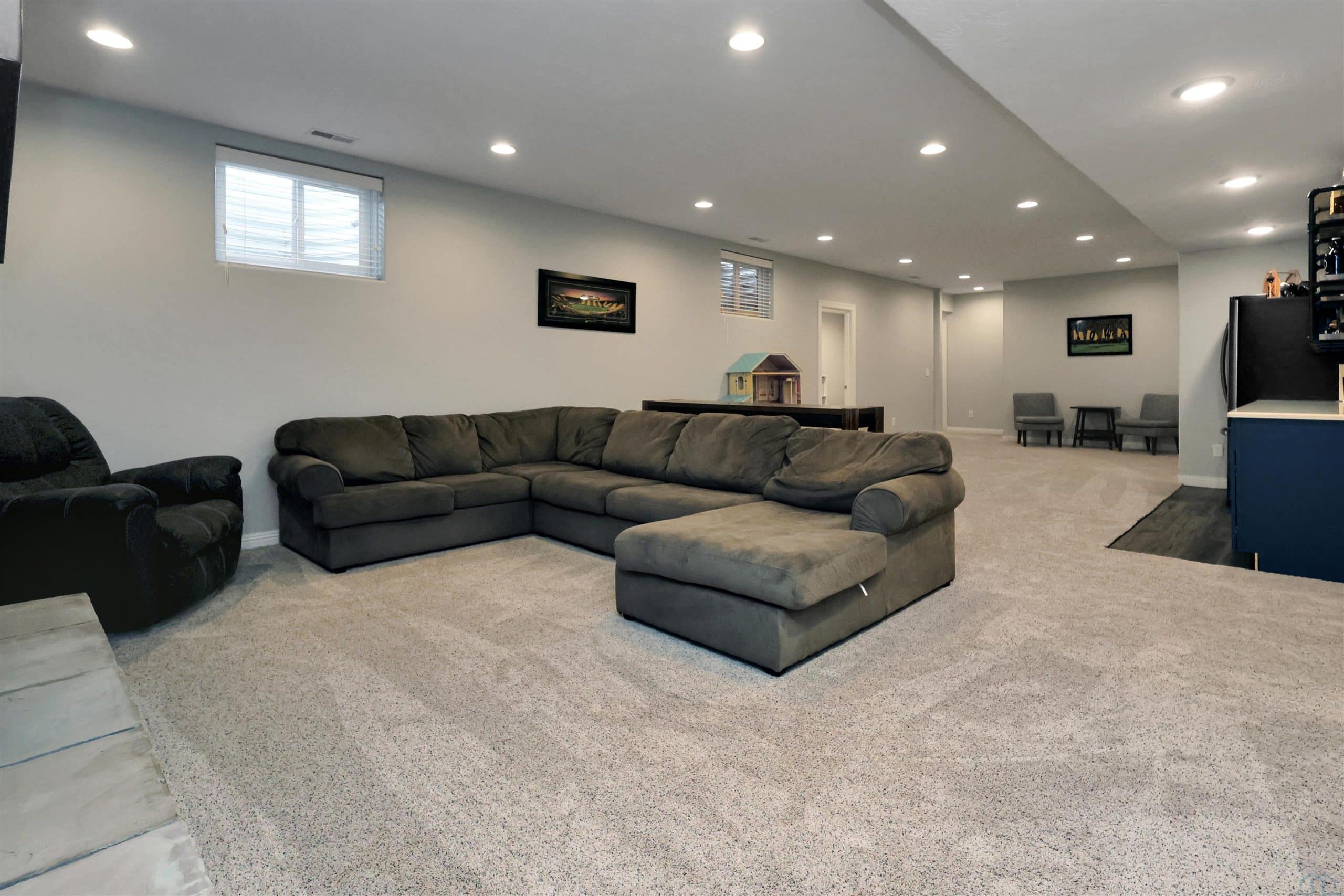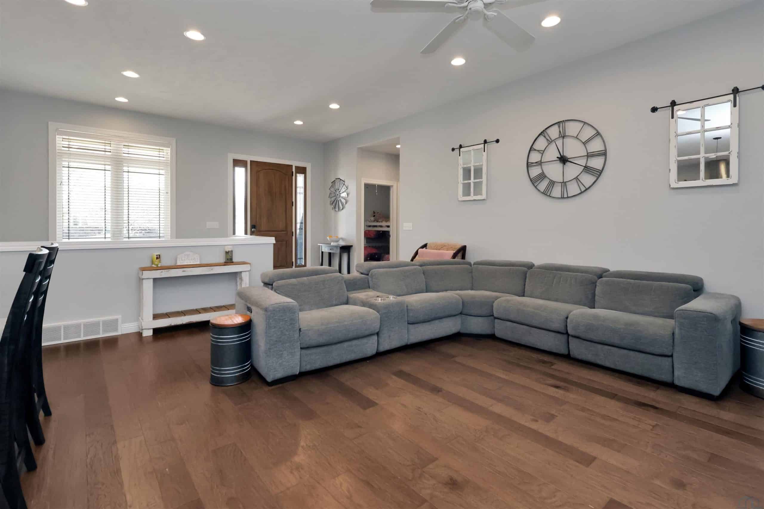 Come home to 573 Sandstone Circle, a 5 bed, 3 bath ranch on one of the most coveted neighborly streets in Dakota Dunes. The home is in The Meadows on a cul-de-sac that is all about community: holiday and birthday gatherings, evening get togethers, and all the action of neighbors who are like family. When you arrive you will appreciate striking curb appeal and a covered front porch. Once inside a spacious foyer greets, and the open-concept living space is cohesive thanks to the living roomâs recently added and perfectly matched hardwoods that now span the entire space. The kitchen was made for entertaining or enjoying meals at home, with granite counters, oversized island, tasteful cabinets, backsplash, and stainless appliances. Off the kitchen is the drop zone with recently added lockers + laundry area. Behind the laundry to the back of the home is the spacious primary en suite, with tray ceiling, upgraded 5-piece bathroom with glass/tile shower, soak tub, dual sink vanity, + plenty of storage; the walk-in closet is well-designed. On the other side of the home are the two commodious spare bedrooms, both with great closets, and the main, full bath. In the basement is a large family room complete with gas fireplace, builtins, and brand new bar space with beautiful quartz countertops, builtin display shelving, & black stainless fridge. Space abounds here in this lower level with ample storage areas, concrete safe room, built-in play space under the stairs, two spare bedrooms, and another full bath. This property just has had permanent holiday lighting installed, offers recently shampooed carpets, fresh paint, 2 new water heaters (both 50-gal), heated/oversized 3-stall garage with built ins, fenced yard, covered patio, negotiable play set, and the benefit of close proximity to the Meadows park & the Country Club. Donât let this beauty get away.