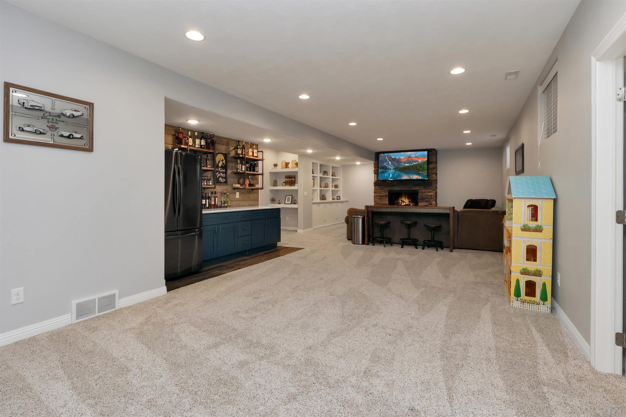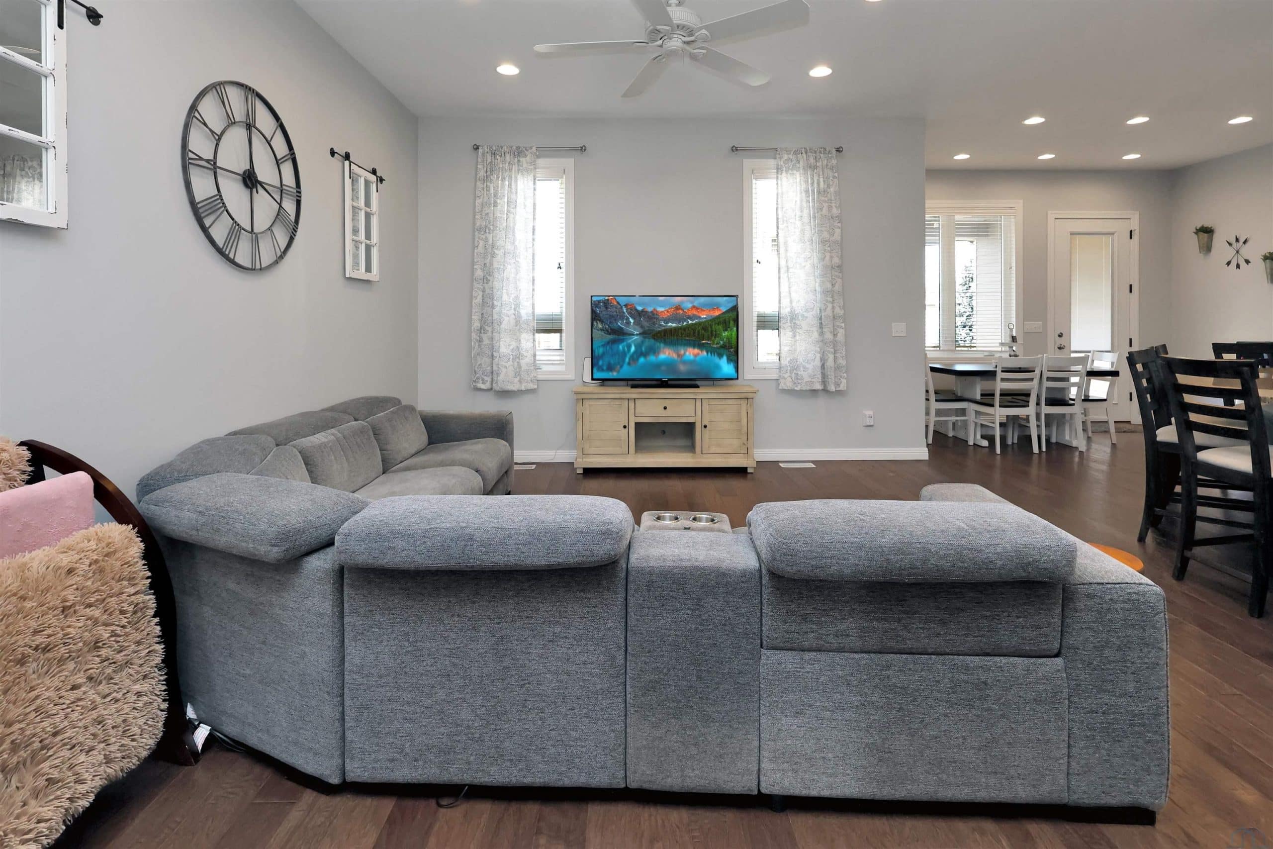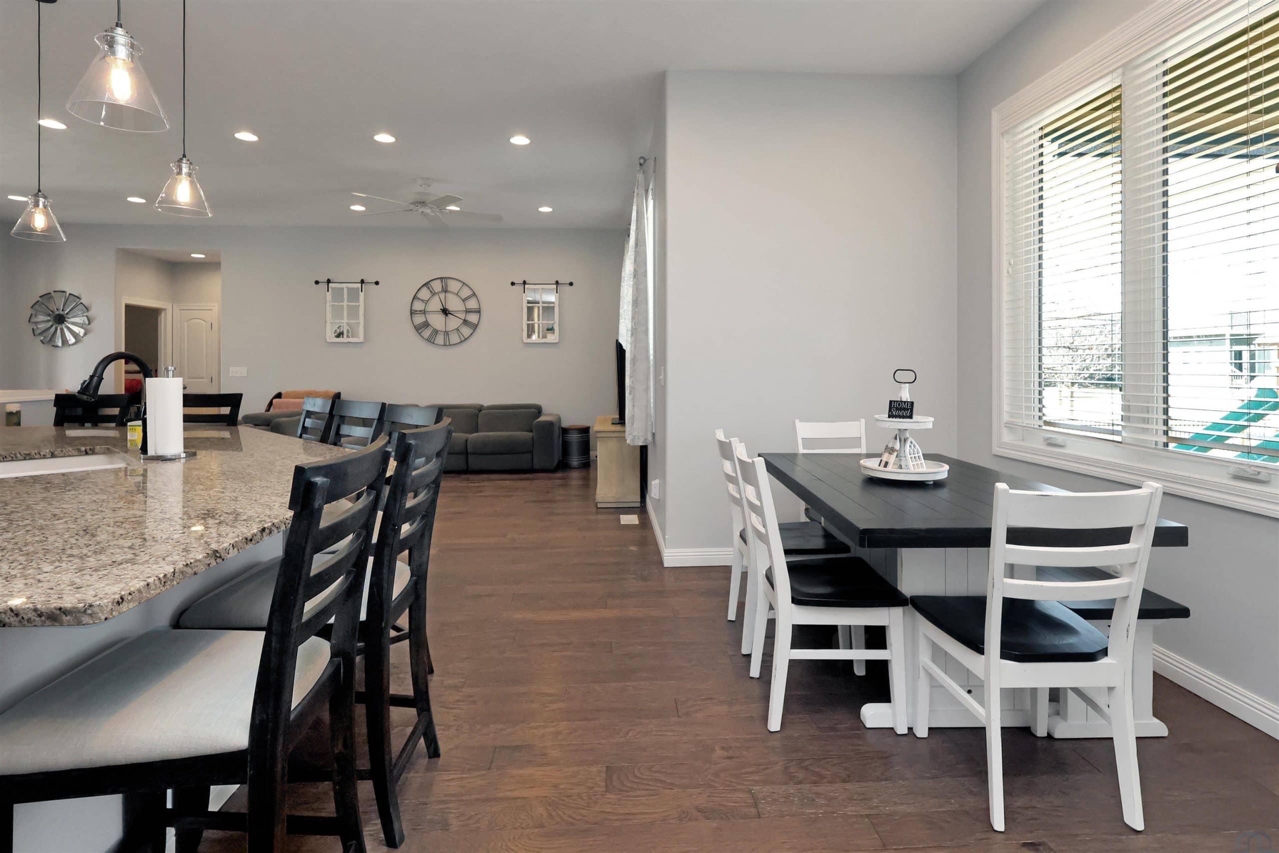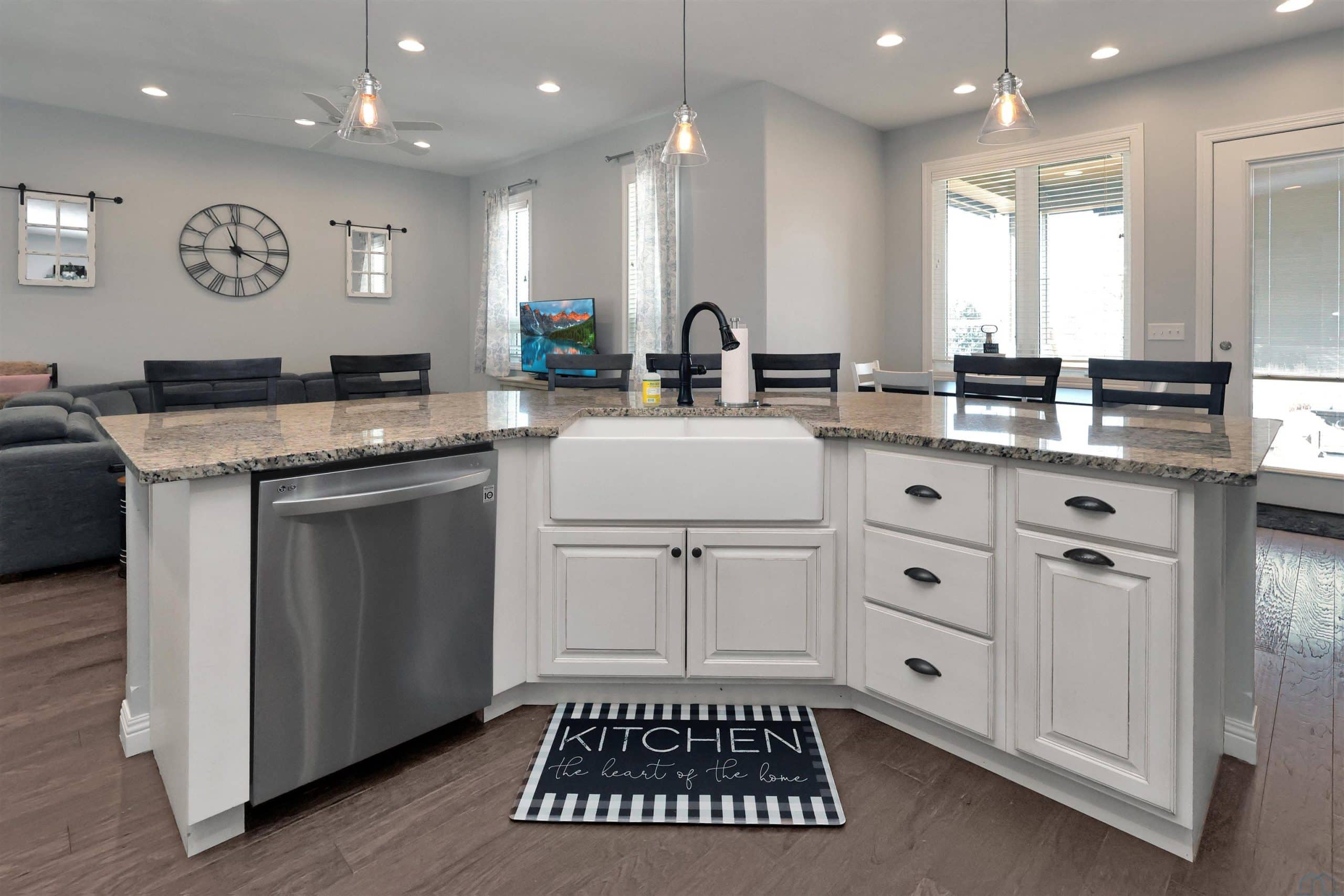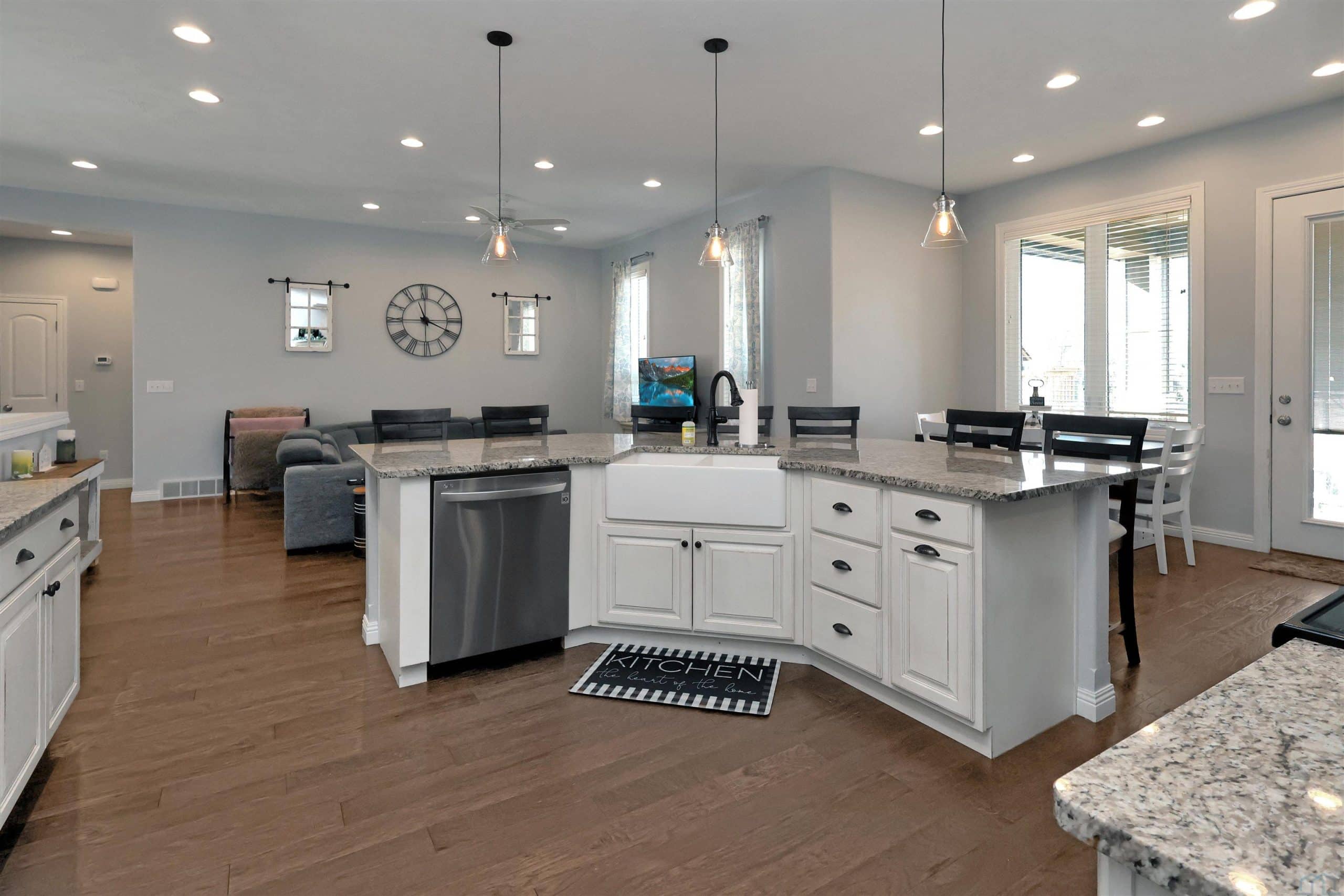 Come home to 573 Sandstone Circle, a 5 bed, 3 bath ranch on one of the most coveted neighborly streets in Dakota Dunes. The home is in The Meadows on a cul-de-sac that is all about community: holiday and birthday gatherings, evening get togethers, and all the action of neighbors who are like family. When you arrive you will appreciate striking curb appeal and a covered front porch. Once inside a spacious foyer greets, and the open-concept living space is cohesive thanks to the living roomâs recently added and perfectly matched hardwoods that now span the entire space. The kitchen was made for entertaining or enjoying meals at home, with granite counters, oversized island, tasteful cabinets, backsplash, and stainless appliances. Off the kitchen is the drop zone with recently added lockers + laundry area. Behind the laundry to the back of the home is the spacious primary en suite, with tray ceiling, upgraded 5-piece bathroom with glass/tile shower, soak tub, dual sink vanity, + plenty of storage; the walk-in closet is well-designed. On the other side of the home are the two commodious spare bedrooms, both with great closets, and the main, full bath. In the basement is a large family room complete with gas fireplace, builtins, and brand new bar space with beautiful quartz countertops, builtin display shelving, & black stainless fridge. Space abounds here in this lower level with ample storage areas, concrete safe room, built-in play space under the stairs, two spare bedrooms, and another full bath. This property just has had permanent holiday lighting installed, offers recently shampooed carpets, fresh paint, 2 new water heaters (both 50-gal), heated/oversized 3-stall garage with built ins, fenced yard, covered patio, negotiable play set, and the benefit of close proximity to the Meadows park & the Country Club. Donât let this beauty get away.