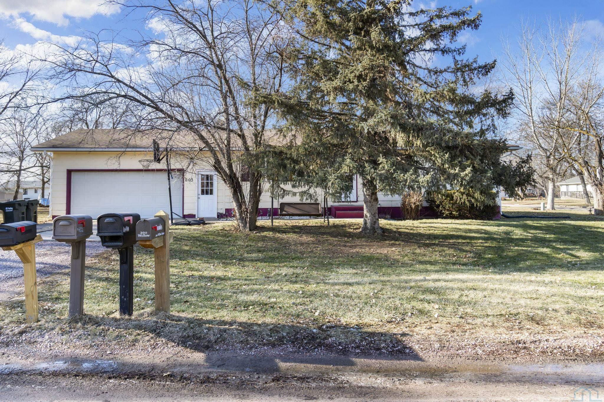 Welcome to this move-in ready ranch home on a quiet corner lot in Dakota City. The home features 4 bedrooms and 2 bathrooms with many recent updates, including new LVP flooring (2024), cabinets and windows (2023), and gutters (2025). The main level offers an open living and dining area with great natural light, a remodeled kitchen with included appliances, three bedrooms, and a full bath. The basement includes a family room, one bedroom with an egress window, one non-conforming bedroom, a full bath, and a large laundry and storage area. This home is well cared for. Room sizes may vary.