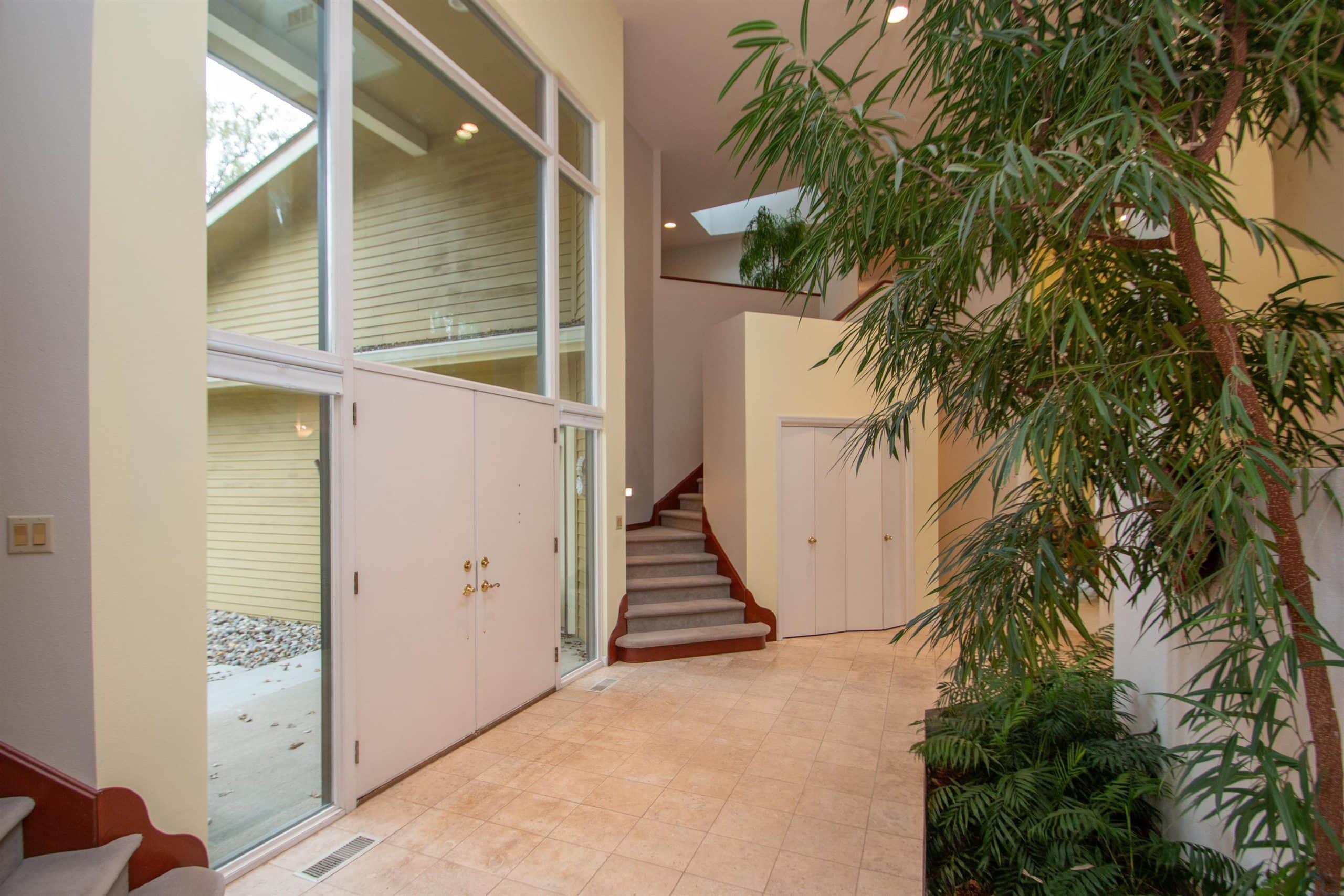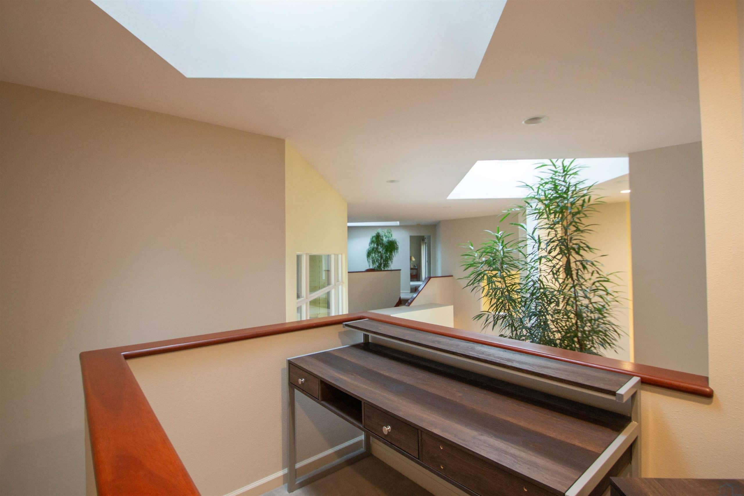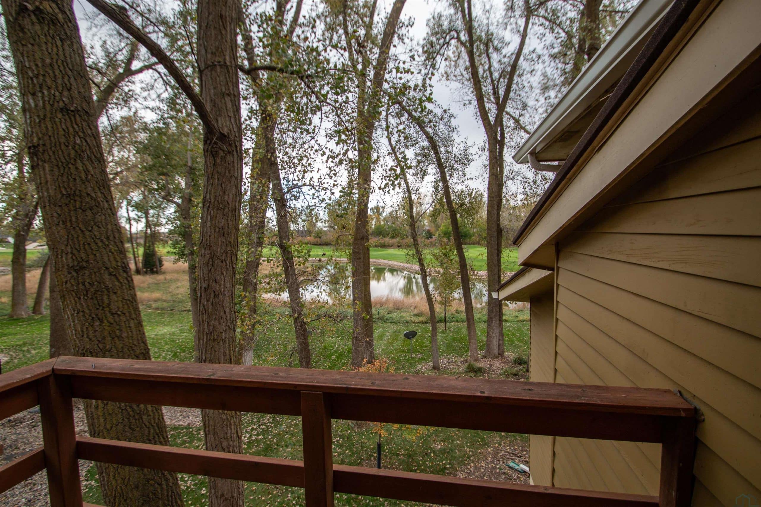 Tucked away on a wooded lot with pond & course views is this unique 1.5 story home with 4 ensuite bedrooms and 3 car garage. As you enter the 2 story foyer you will find an indoor garden area with drip line, 2 staircases, tile floor, skylight and a dbl closet for guests. Pocket doors lead to formal dining area with carpet. Vaulted ceiling in living room with wall of windows to those great views, and gas FP to curl up in front of. Casual dining area off the kitchen has floor to ceiling windows. tile floor and door to Brand New Trex Deck. Kitchen features cherry cabinets with an island, 2 Bosch DW, a gas cooktop, commercial fan, appliance center, warming drawer and a pantry. For more casual living there is a family room with wood floor, wood FP with tile hearth and stacked stone surround as well as a wet bar area. Through French doors to the master suite bedroom with gas FP, built in desk area and door to front of home. Retreat to the bathroom with tile floor, dbl vanity, jet tub, toilet/shower room, 10 x 6 WIC and door to new deck. Other side of home has a bedroom with dbl closet and door to a private deck. The 3/4 bathroom off this bedroom has a single vanity and can be accessed from the hall as well. Going up 1 of the front stairs is a 10 x 4 loft overlooking the entry and leads to a Junior Suite with bedroom with wood floor, door to Juliet balcony with pond view, a WIC and door to dry storage, a full bathroom and laundry area. Going up the other stairs is another 11 x 9 loft area, utility closet, and another Junior Suite with bedroom with carpet, door to Juliet balcony with pond view, a full bathroom with laundry area, 2 dbl closets and skylight. UPDATED FEATURES: Shingles replaced with steel roof 2015, new 6" gutters with leaf guard, New concrete driveway & sidewalk 2025, New Trex deck on the back of the house 2023. New Pella windows main floor and second floor on the west side of house. FP: 2 gas-1 wood. 3 HVAC. $20,000 exterior paint allowance.
