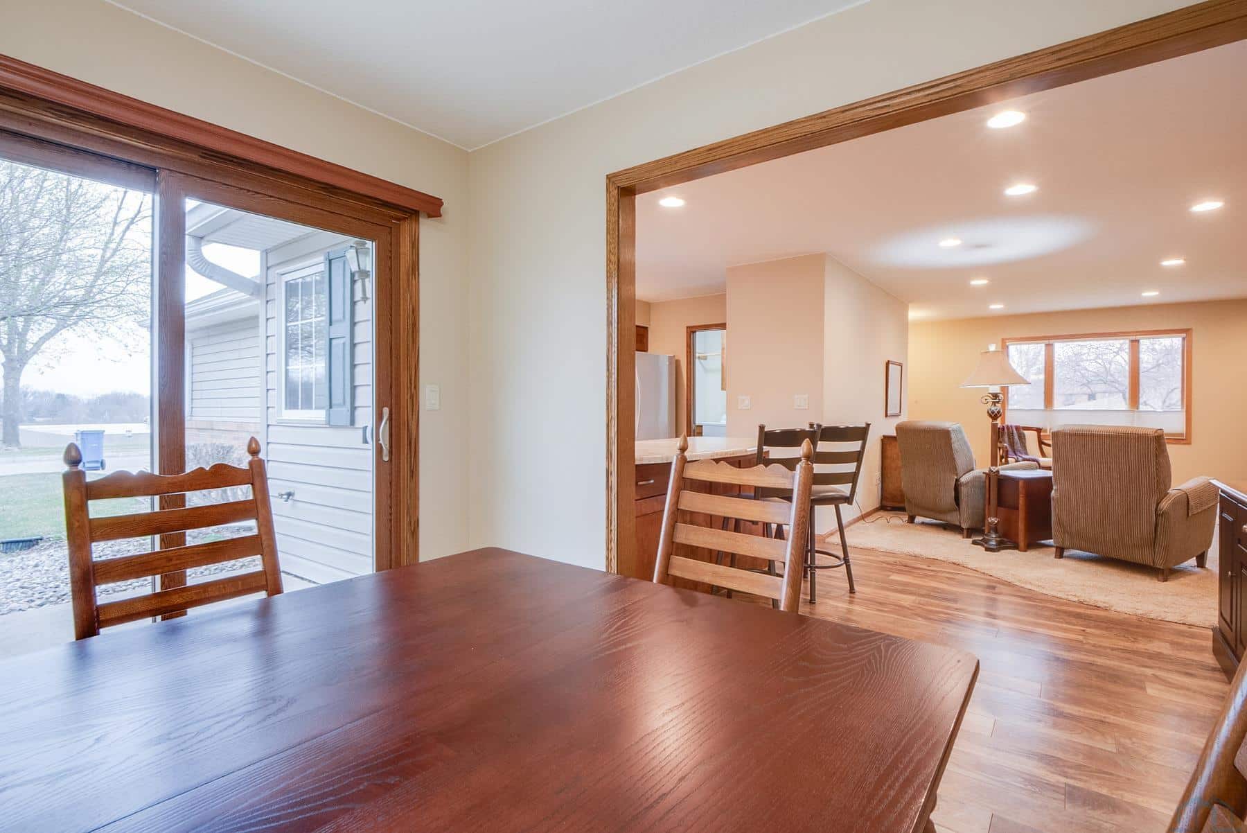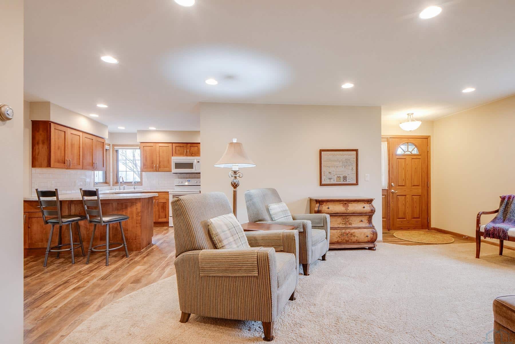 End unit condo at Heritage Estates! This beautifully updated condo features all newer, high-quality finishes. If you are looking for a comfortable and low-maintenance lifestyle with all the amenities, donât miss this opportunity. Enjoy unobstructed views from every room. North windows and the sliding door to the patio have been replaced. The kitchen is perfectly designed with a breakfast bar for everyday convenience. The dining area offers plenty of sunlight and stunning sunset views. The two bedrooms are spacious, with the primary bedroom offering an en-suite bath complete with a large vanity and a walk-in Onyx shower. The second bath also features a walk-in Onyx shower. The unit includes well-thought-out storage options and laundry space that can be conveniently closed off. The zero-entry access from the double garage provides an easy entrance. All condo units are connected by a hallway, allowing you to enjoy the community year-round without having to go outdoors. There is a large community room equipped with a kitchen, perfect for hosting larger events or gatherings. Are you ready to simplify your life and take on less responsibility? This is your perfect opportunity! *Listing agent is related to the seller
