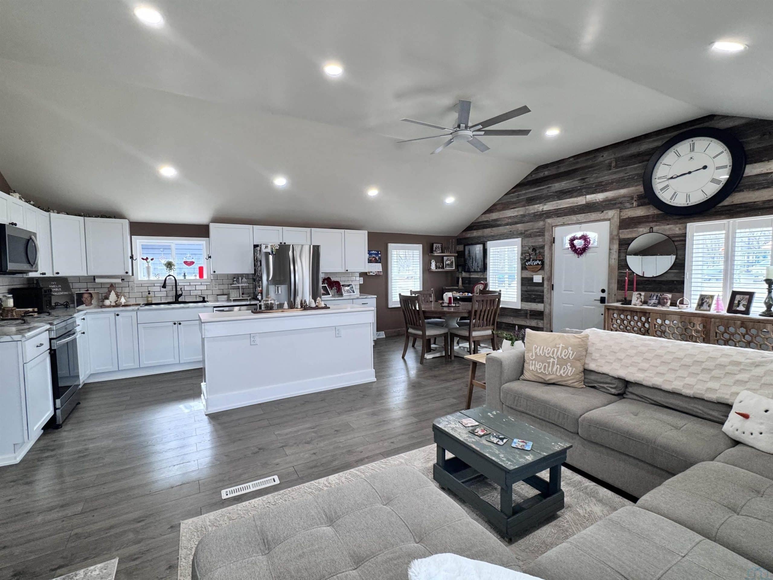 Welcome to 709 3rd Street. This beautifully updated 3-bedroom,1 bath ranch home blends modern updates with warm, rustic charm. Completely renovated in 2022, this property features stylish barnwood shiplap accents that add character and a cozy inviting feel throughout the home. Upon entering the front door the gorgeous new paint colors, electric fireplace, and vaulted ceilings make it a wonderful space for entertaining or just relaxing with family. Everything you need in on one level with main floor laundry, 3 large bedrooms, and a gorgeous full bathroom. This spacious bathroom is spectacular with a double sink vanity, gray quartz countertops, a tiled tub surround, a nice soaking tub, and a luxurious rainfall shower head. Enjoy peace of mind with a NEW roof and siding in 2024, updated windows in 2022, updated luxury vinyl plank flooring in 2022, a new water heater in 2022, a new furnace in 2022, a Morton water softener in 2022, and gorgeous modern light fixtures that make this home truly move in ready. Outside you will love the fully fenced yard perfect for kids, pets, or grilling on the back patio. A detached two car garage offers plenty of room for vehicles, tools, or hobbies. Need even more space?? There is a bonus storage shed with potential for a workshop or extra yard equipment. With updates and charm this home checks all the boxes. Not to mention it is located within walking distance to West Monona Elementary school. Don't miss the chance to make 709 3rd street your own.