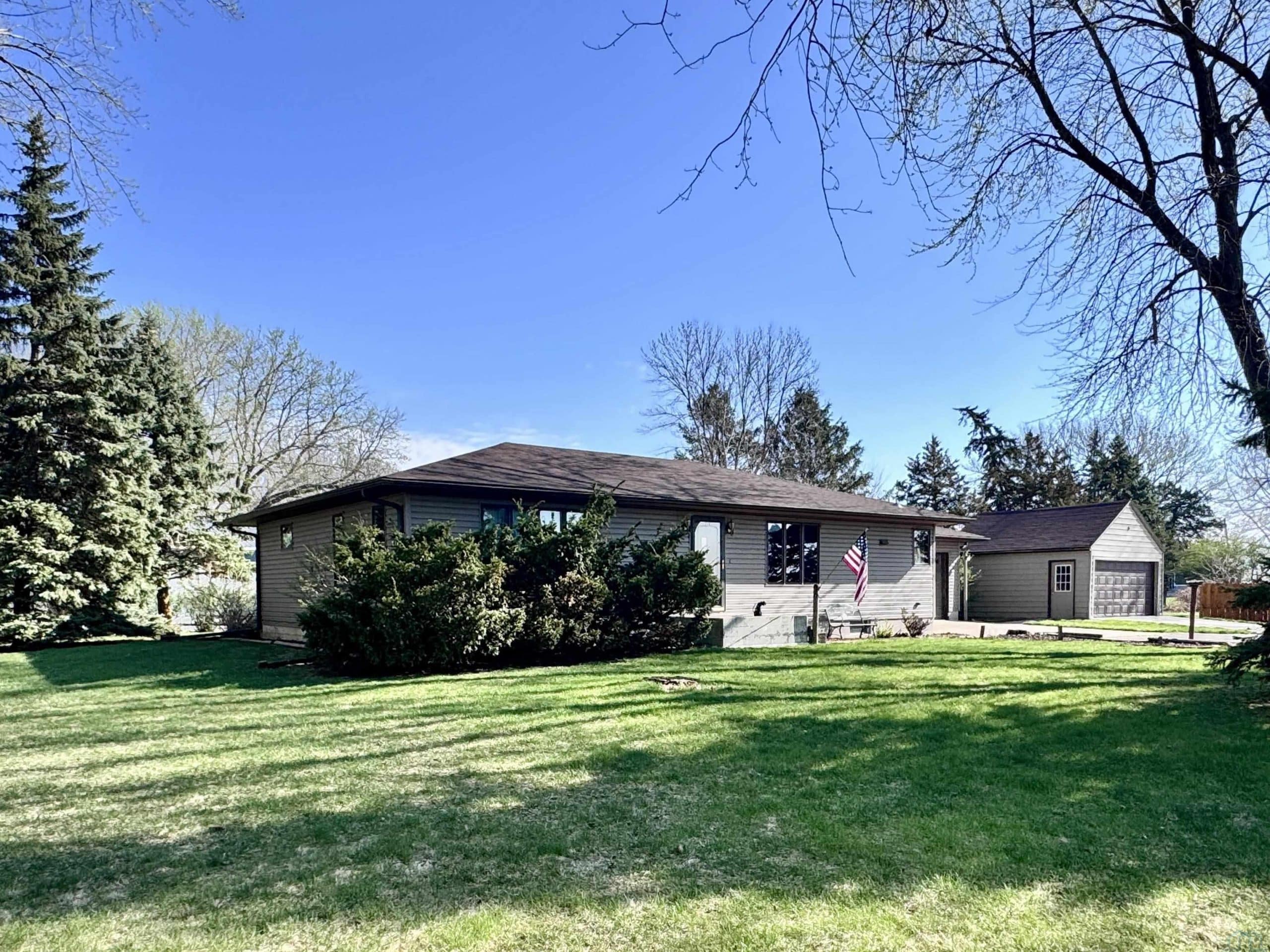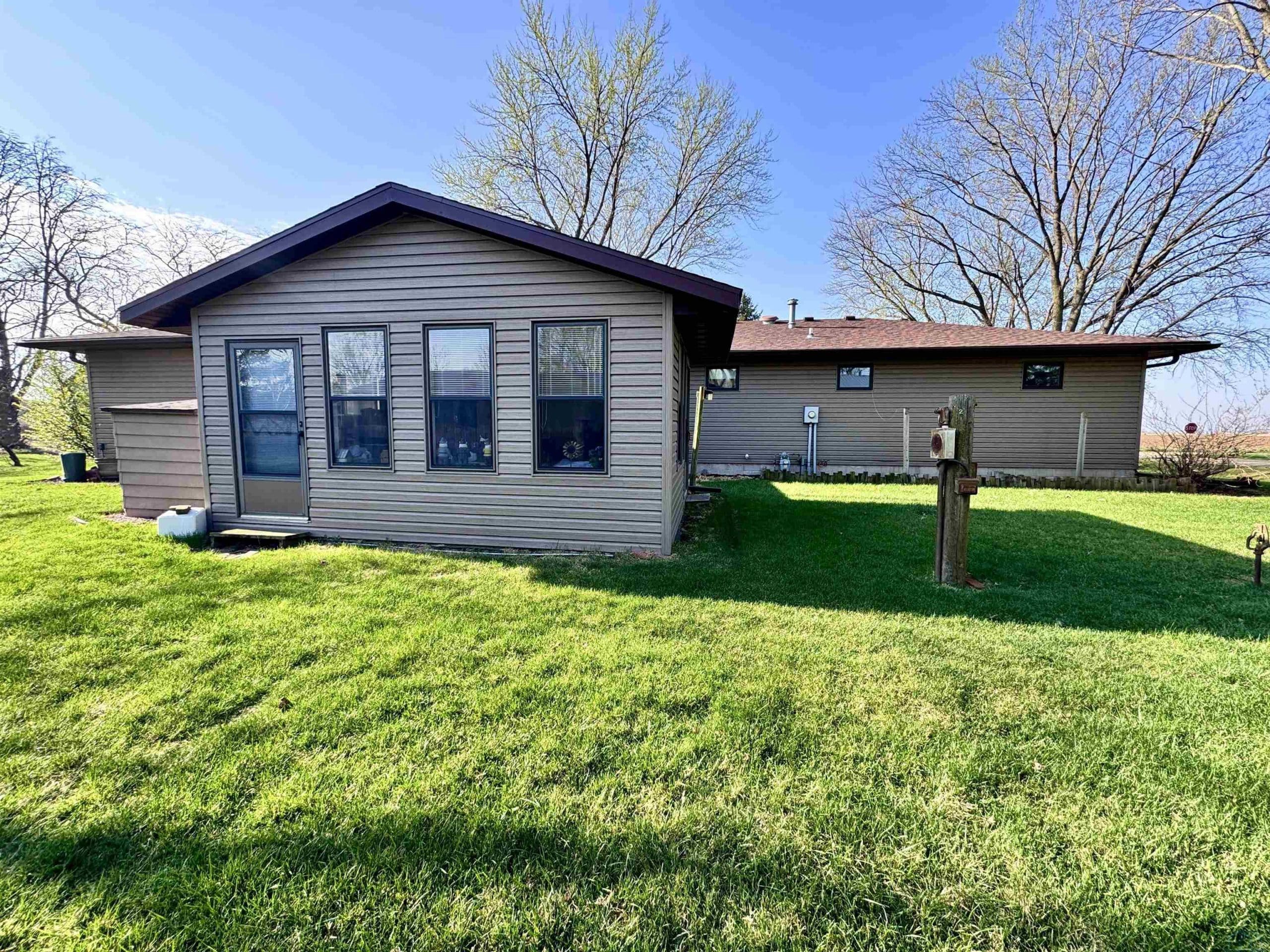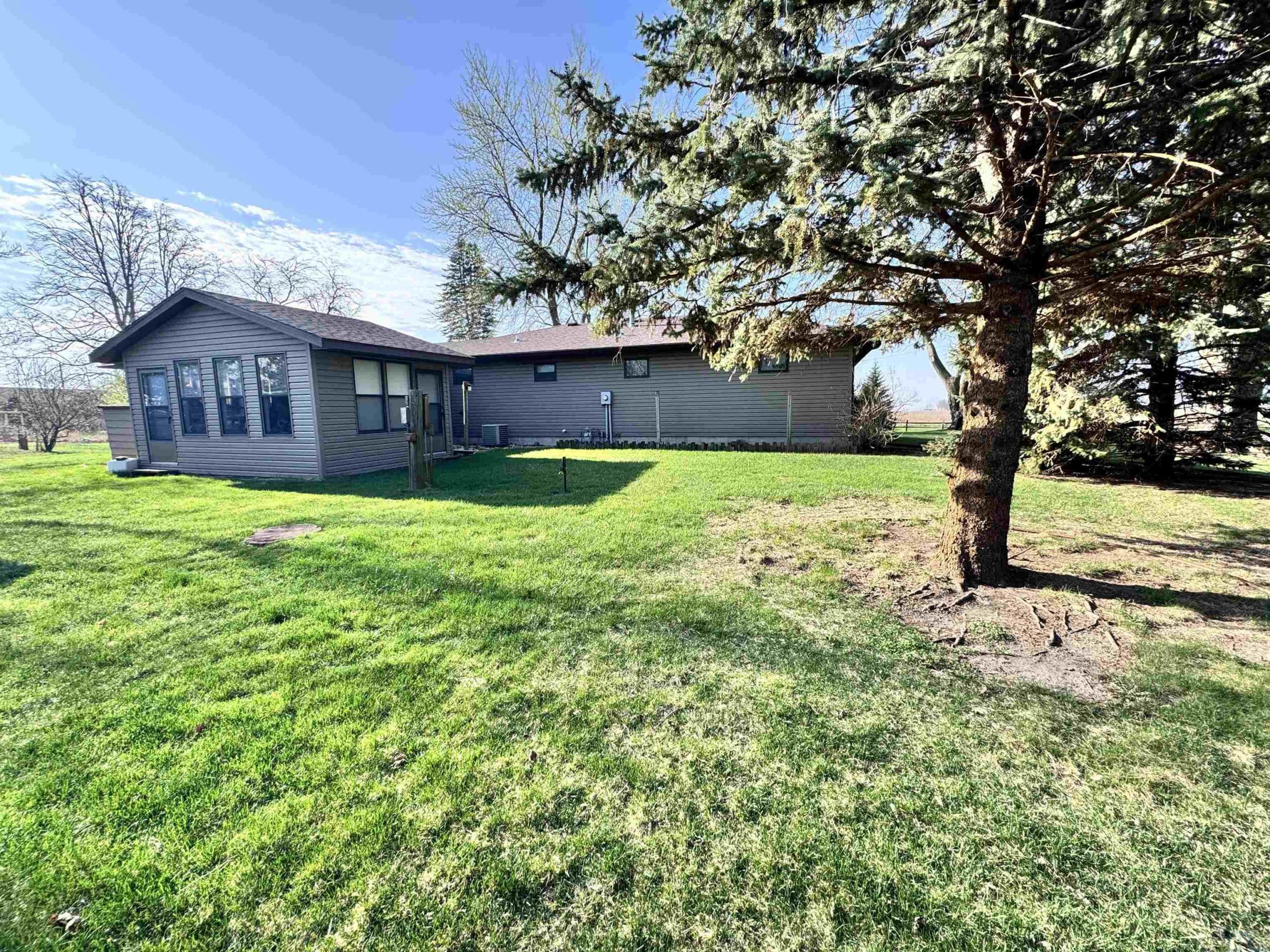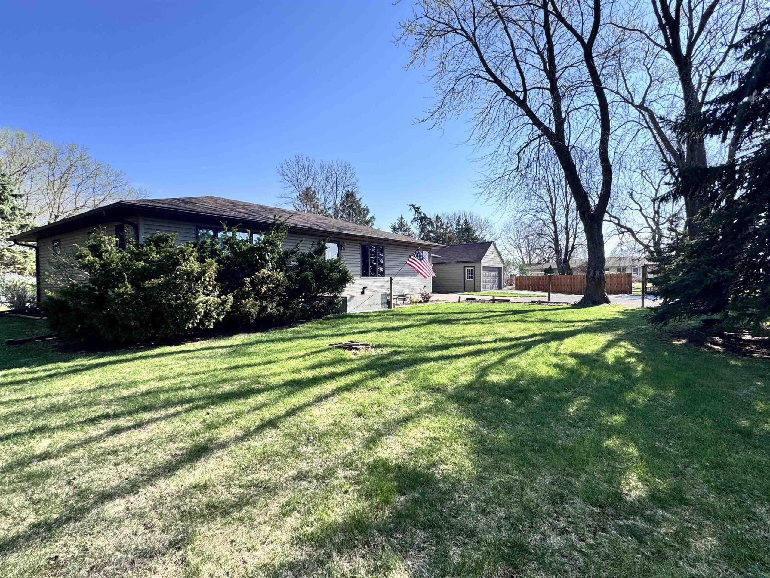 This 2 bedroom/ 1 bath ranch home is such a great find on 1/2 an acre lot within city limits. You have everything you need on one level with main floor laundry, 2 large bedrooms, 1 bathroom, and a 3-season room. The kitchen has gorgeous cabinetry, the window over the kitchen sink overlooks the lot, and the appliances all stay. This corner lot is something spectacular. You have beautiful mature trees, gorgeous landscaping, and even a little spot for a garden. The sprinkler system is an added bonus. Imagine relaxing on that enclosed sunporch outback with the numerous windows open while taking in the beauty of this lot. The unfinished basement has so much potential to add more bedrooms and the storage shelving is amazing. The amount of storage in this home is abundant with double closets in each bedroom, a large linen closet in the bathroom, a nice cedar closet in the hallway, and a large pantry closet off the kitchen. Outside you also have another detached garage and storage shed. Numerous updates to the home include a NEW roof in 2024, a NEW water softener in 2024, a NEW kitchen faucet in 2024, a NEW garbage disposal in 2024, a NEW water heater in 2025, and a NEW microwave in 2025. Move right in to this well maintained home and enjoy that farmland view from the dining room window.