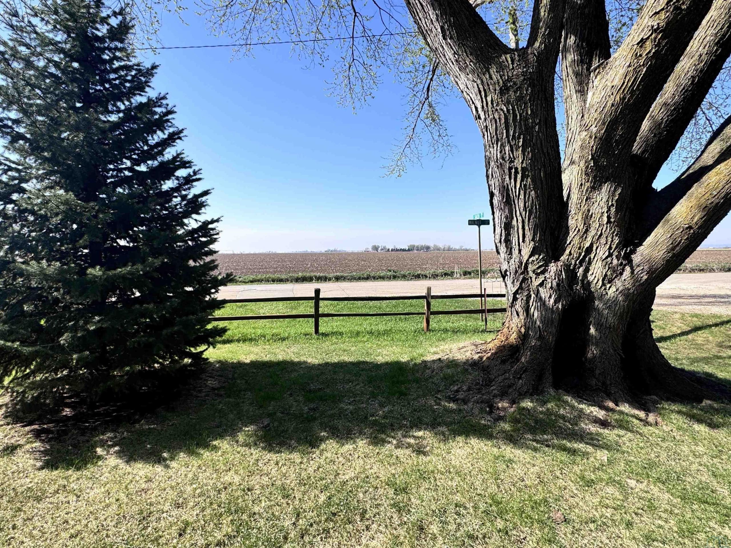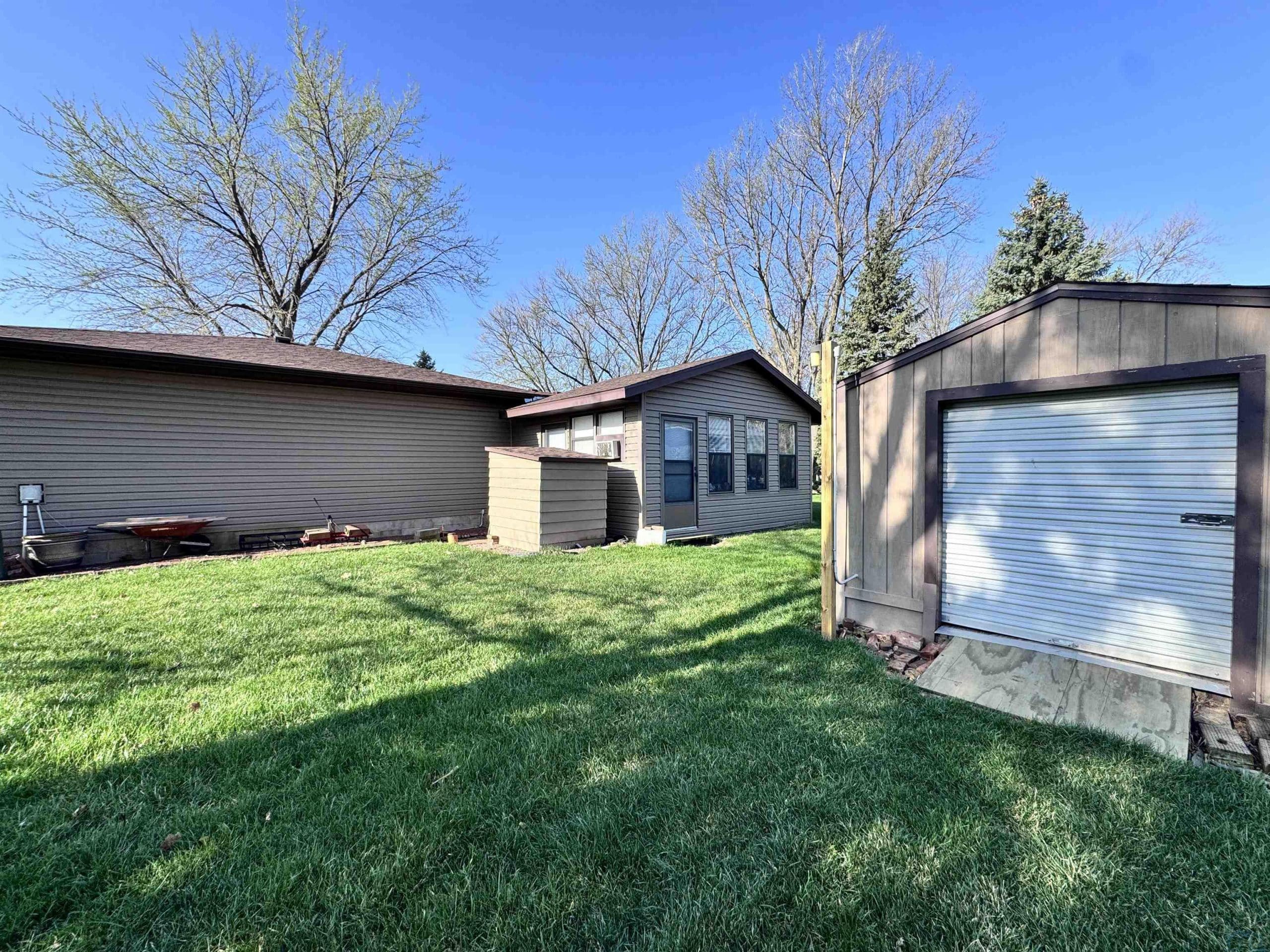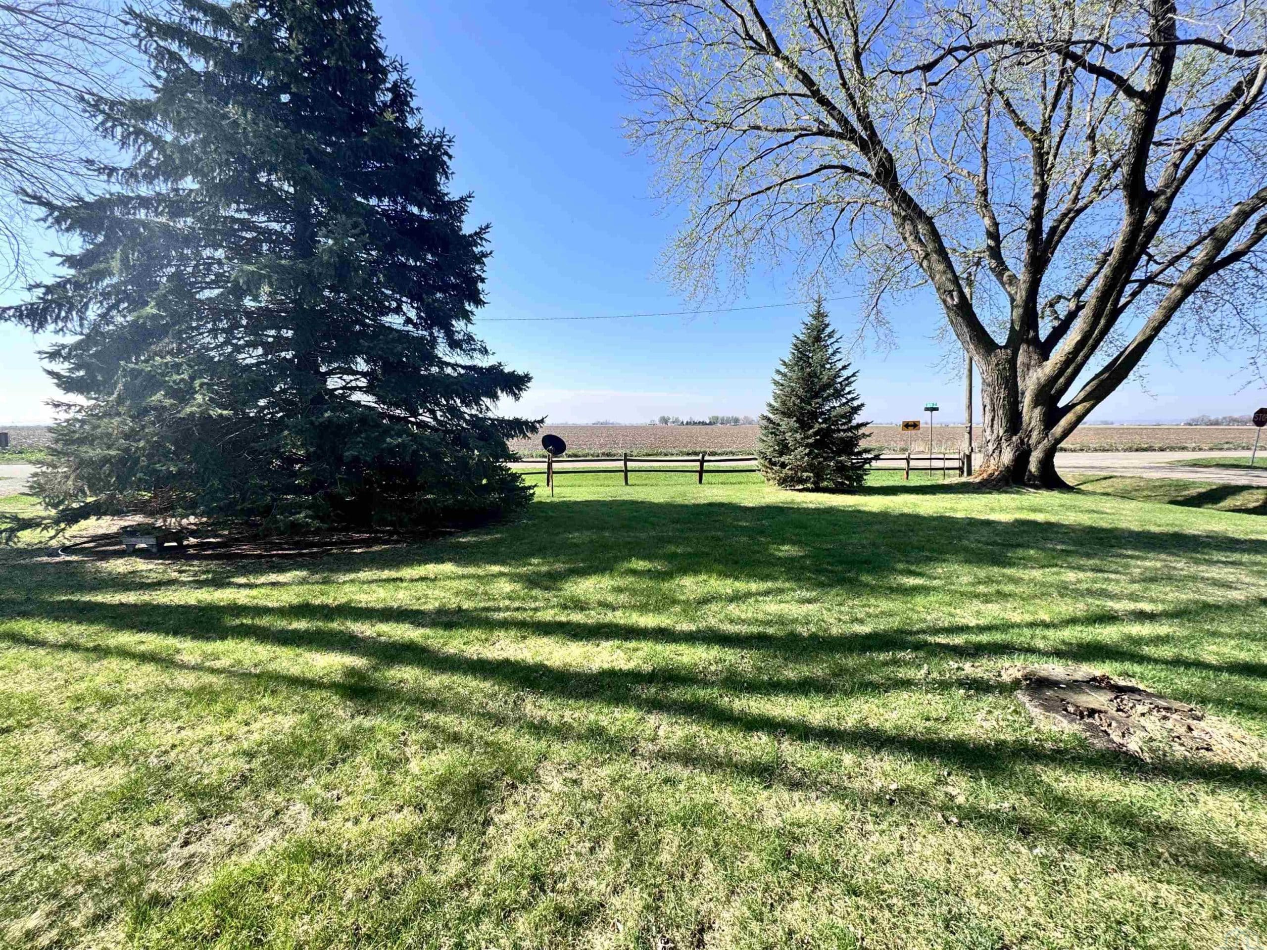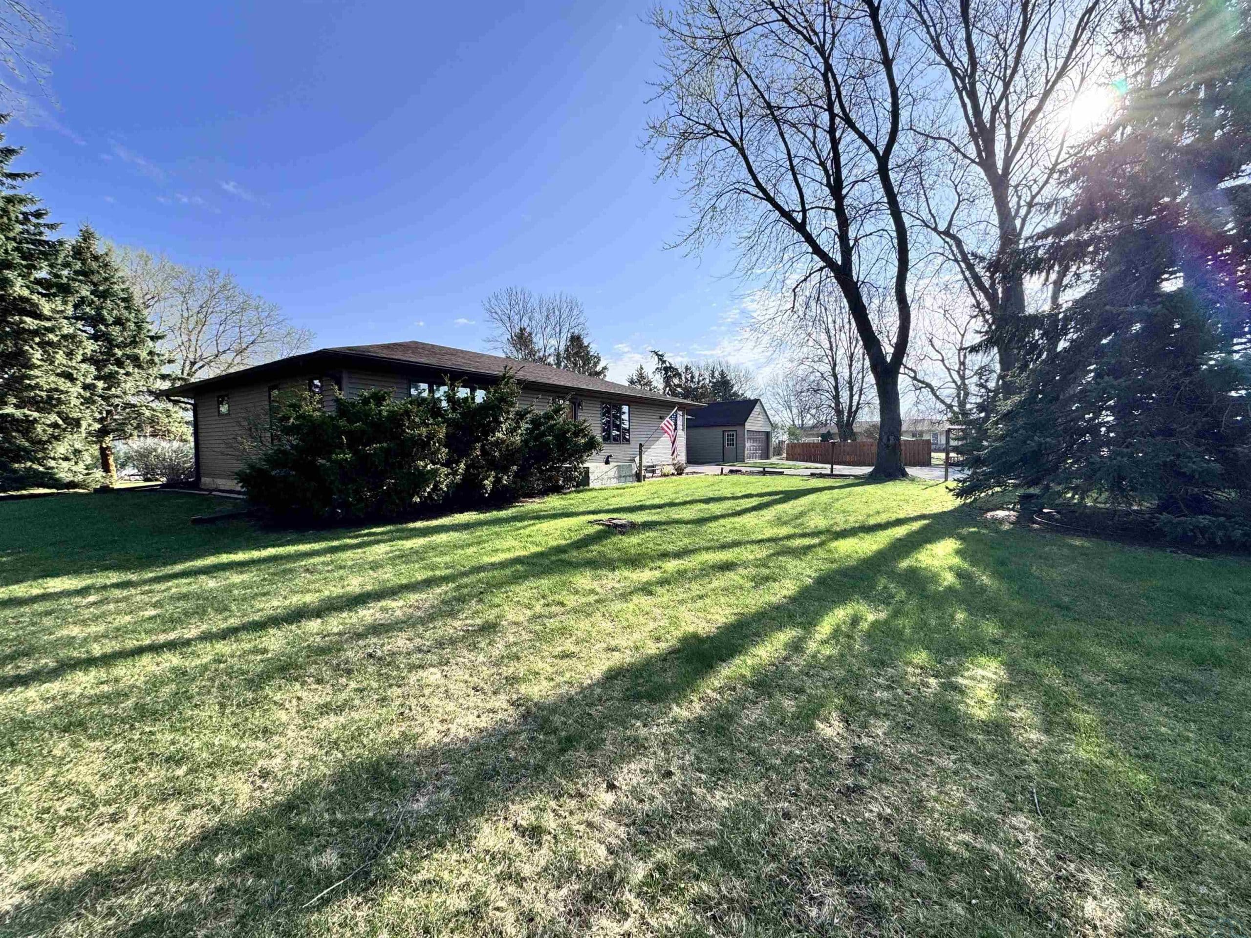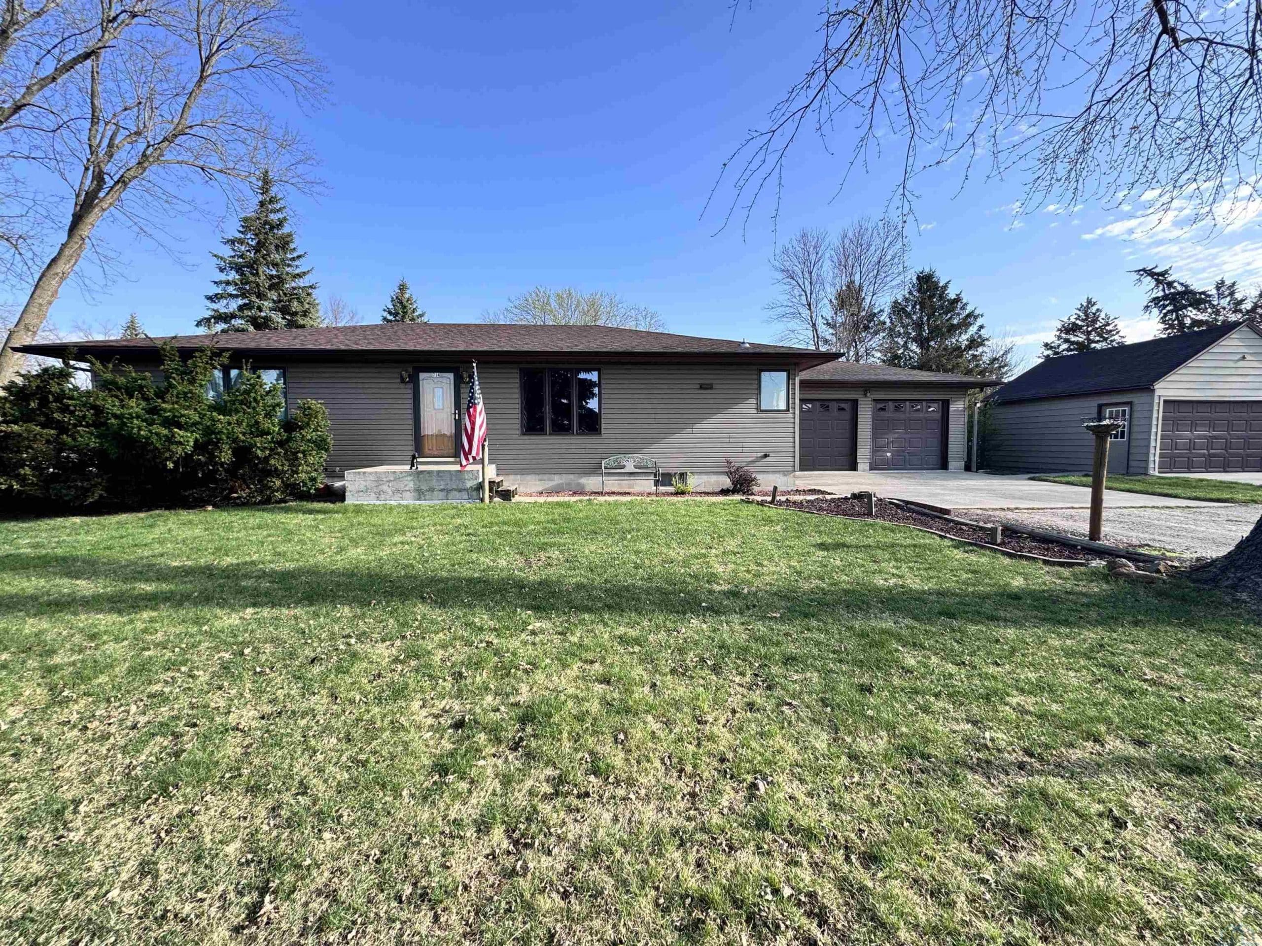 This 2 bedroom/ 1 bath ranch home is such a great find on 1/2 an acre lot within city limits. You have everything you need on one level with main floor laundry, 2 large bedrooms, 1 bathroom, and a 3-season room. The kitchen has gorgeous cabinetry, the window over the kitchen sink overlooks the lot, and the appliances all stay. This corner lot is something spectacular. You have beautiful mature trees, gorgeous landscaping, and even a little spot for a garden. The sprinkler system is an added bonus. Imagine relaxing on that enclosed sunporch outback with the numerous windows open while taking in the beauty of this lot. The unfinished basement has so much potential to add more bedrooms and the storage shelving is amazing. The amount of storage in this home is abundant with double closets in each bedroom, a large linen closet in the bathroom, a nice cedar closet in the hallway, and a large pantry closet off the kitchen. Outside you also have another detached garage and storage shed. Numerous updates to the home include a NEW roof in 2024, a NEW water softener in 2024, a NEW kitchen faucet in 2024, a NEW garbage disposal in 2024, a NEW water heater in 2025, and a NEW microwave in 2025. Move right in to this well maintained home and enjoy that farmland view from the dining room window.