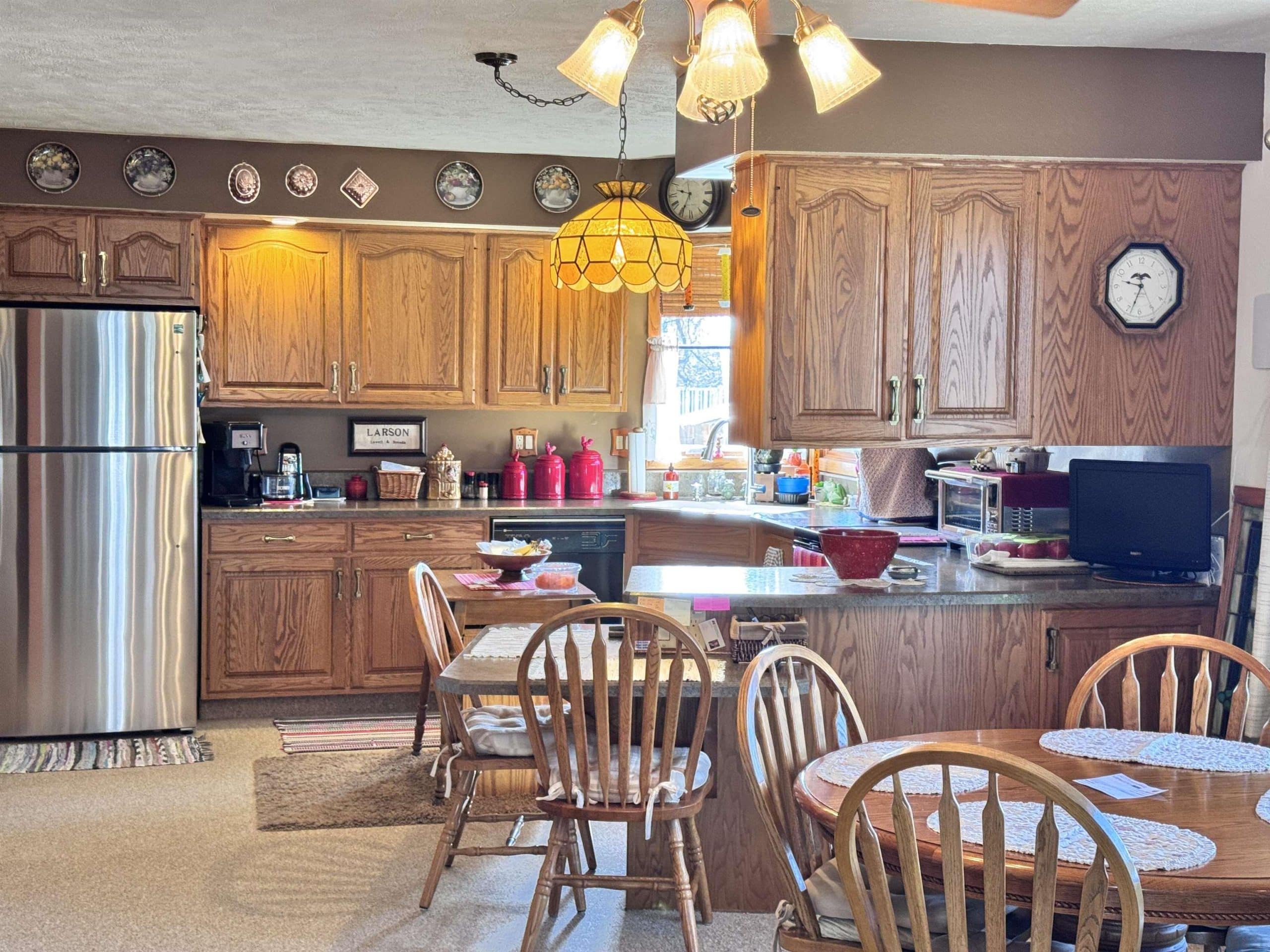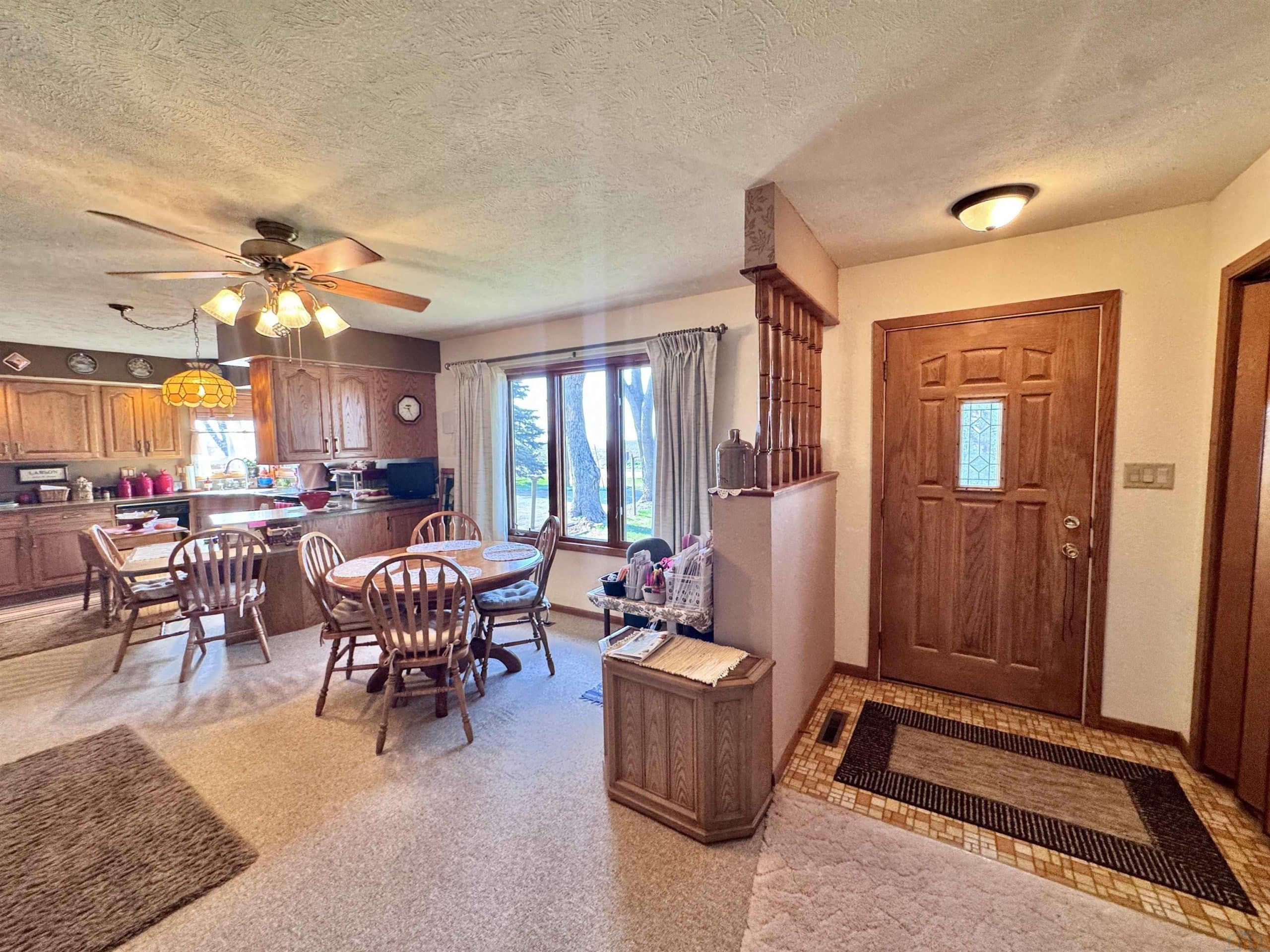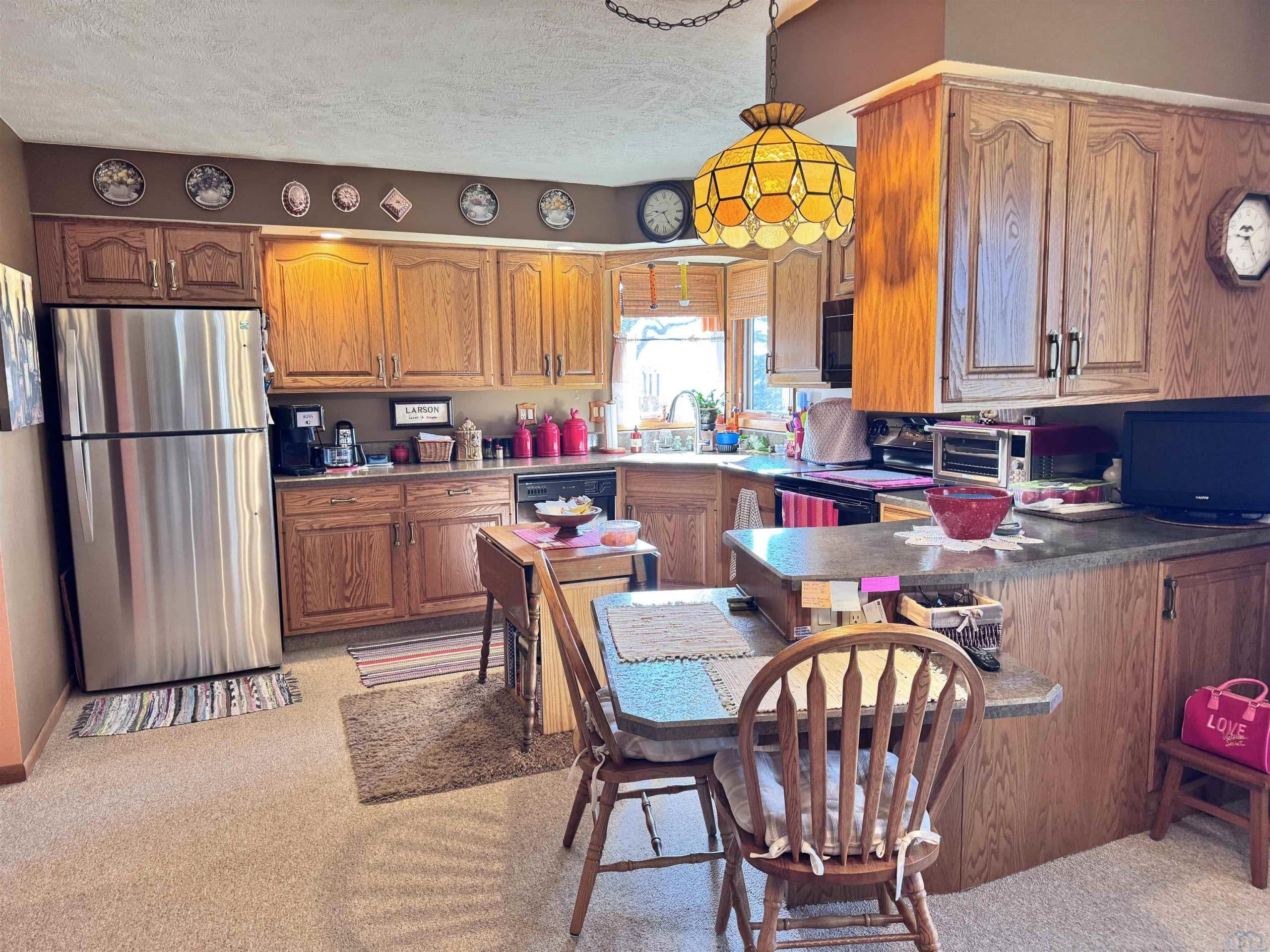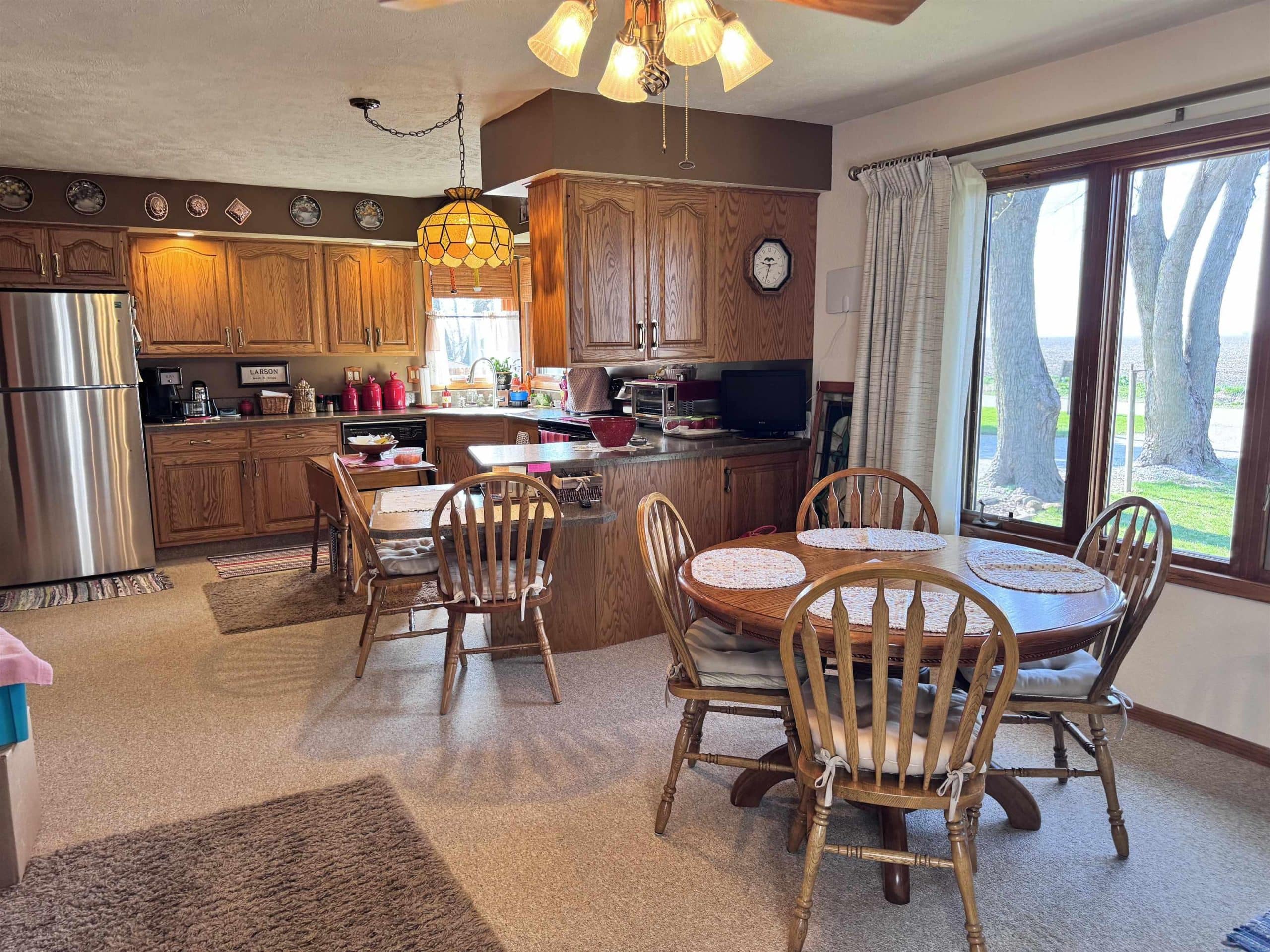This 2 bedroom/ 1 bath ranch home is such a great find on 1/2 an acre lot within city limits. You have everything you need on one level with main floor laundry, 2 large bedrooms, 1 bathroom, and a 3-season room. The kitchen has gorgeous cabinetry, the window over the kitchen sink overlooks the lot, and the appliances all stay. This corner lot is something spectacular. You have beautiful mature trees, gorgeous landscaping, and even a little spot for a garden. The sprinkler system is an added bonus. Imagine relaxing on that enclosed sunporch outback with the numerous windows open while taking in the beauty of this lot. The unfinished basement has so much potential to add more bedrooms and the storage shelving is amazing. The amount of storage in this home is abundant with double closets in each bedroom, a large linen closet in the bathroom, a nice cedar closet in the hallway, and a large pantry closet off the kitchen. Outside you also have another detached garage and storage shed. Numerous updates to the home include a NEW roof in 2024, a NEW water softener in 2024, a NEW kitchen faucet in 2024, a NEW garbage disposal in 2024, a NEW water heater in 2025, and a NEW microwave in 2025. Move right in to this well maintained home and enjoy that farmland view from the dining room window.