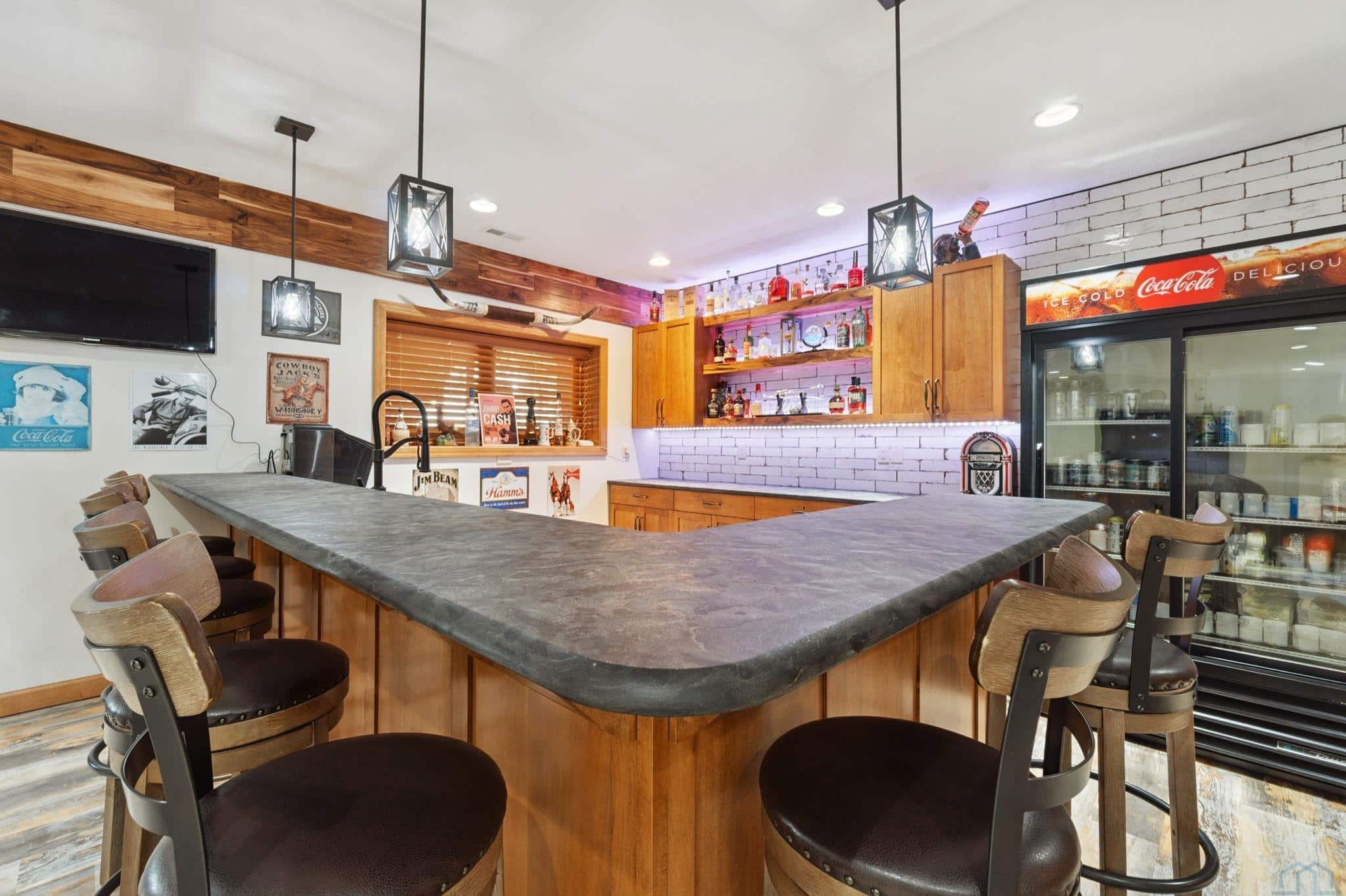 You won't think you have to go on vacation when you walk on the large deck overlooking the large inground pool, top of the line pool house, large firepit and all the natural space behind your lot! You have to take a look at the drone and night pictures and virtual tour, you will fall in love with this wonderful home! This 6 bedroom, 4 bath ranch home with over 5500 sq. ft. of finished living space, sitting on a 1/2acre lot has been extensively updated! Beautiful light finished maple hardwood floors highlight the main floor living areas. Gorgeous ivory ceramic tile wall grabs your attention as you walk into the spacious living room and formal dining room. Large eat in kitchen has eye catching white and black granite, white subway tile backsplash, large breakfast bar, walk in pantry and is open to cozy hearth room. Hearth room has white stone gas log fireplace with built in towers on both sides. Back of the house has very large windows overlooking your private oasis. Office on main has French doors, volume ceiling and hardwood floor. Primary suite has 11 x 10 walk in closet and very modern master bath with walk in tile shower and heated plank ceramic tile floor. There are 2 more bedrooms up and 3 spacious bedrooms down. Family room down is very spacious and has large have to see wet bar, game area and lots of options to set up your furniture. Custom wine cellar has French doors, is temperature controlled and plenty of space for your large wine collection! Hurry to see this home of your dreams with a top of the line with large pool house!