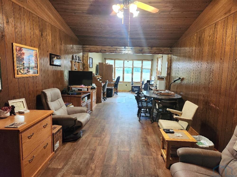 This is a great opportunity to own a property located within the city limits, totaling 2.686 acres, and it offers exceptional potential. The main floor includes two bedrooms, a bath, an office, a living room, laundry facilities, and generous storage space. Despite having only two bedrooms, the house boasts 1,785 square feet on the main level and a full, unfinished basement with 1,785 sq feet. Upon entering, you'll find the living room with hardwood floors, which leads into a spacious kitchen with ample cabinet storage and an island for additional seating. An addition was added in 2018 on the back side of the house to allow for relocating the bedrooms and adding a workshop. A large 37x11 family room is also on the main floor and is situated between the garage and kitchen, offering views of the backyard, and a great place to entertain. The basement provides additional storage and a large workshop with a walk-out door to the backyard. Further enhancing this property is an oversized, attached two-stall garage, complete with both heating and a water supply. The expansive acreage provides plenty of room for outdoor activities, gardening, or simply enjoying the scenic views. This truly is a one-of-a-kind property!