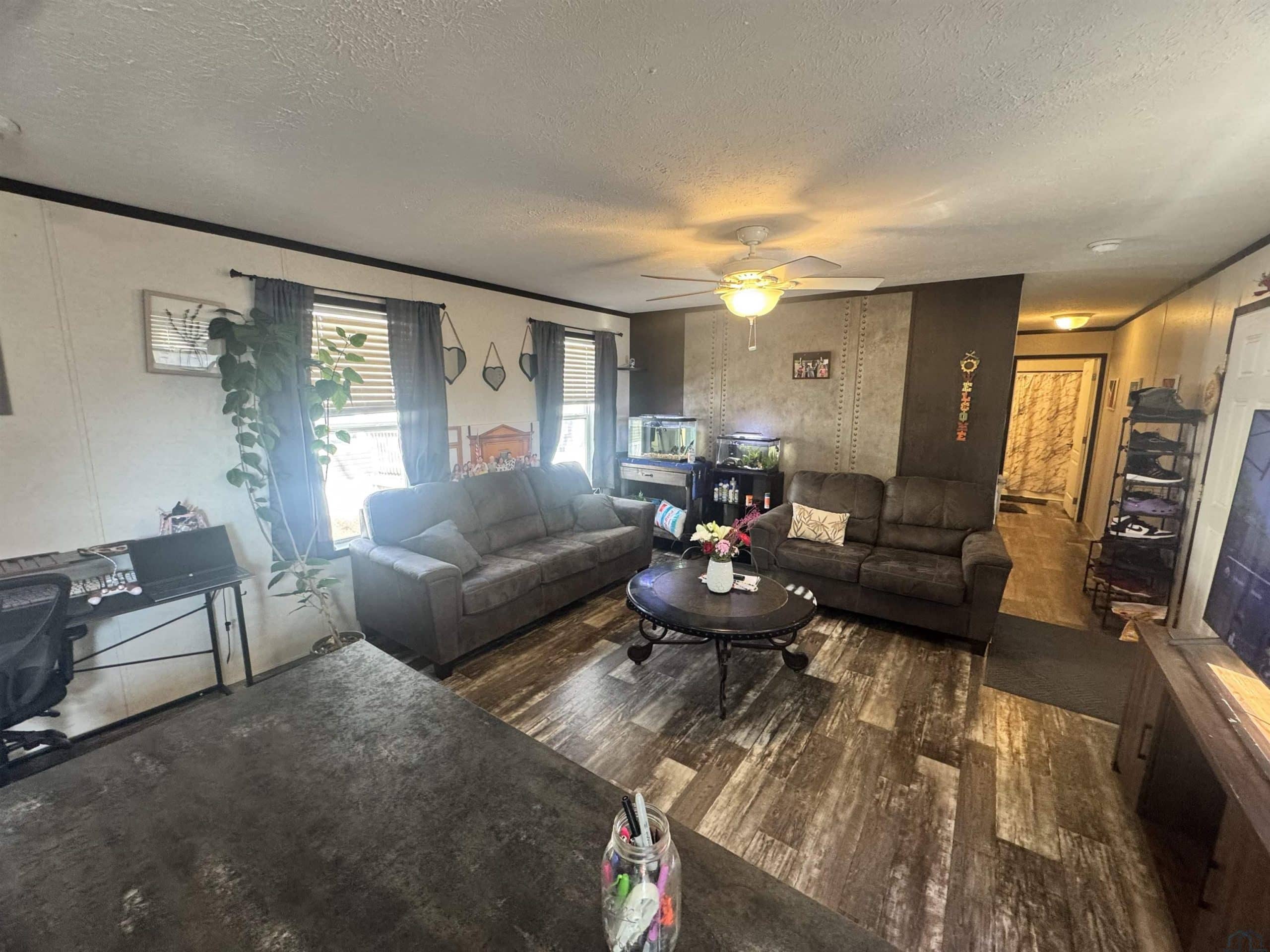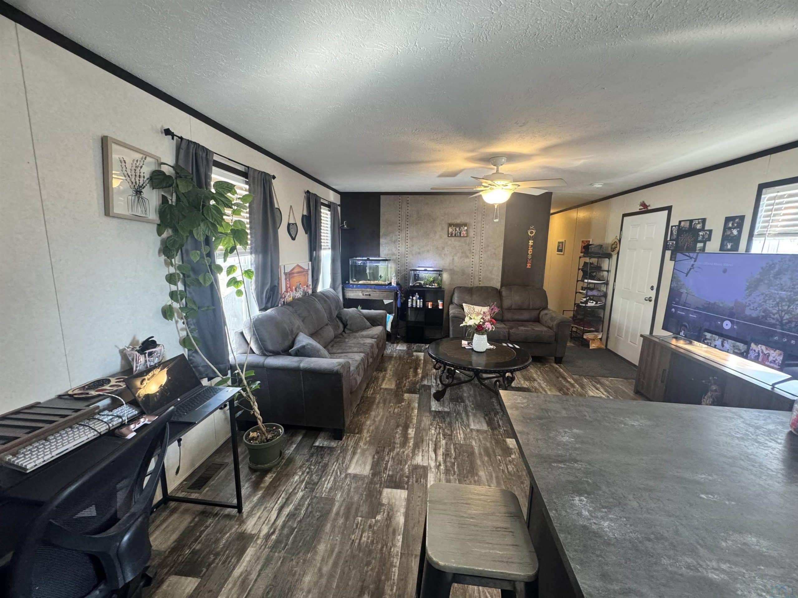 A 2021 mobile home featuring 3 bedrooms and 2 full bathrooms with a spacious open floor plan. The living area flows seamlessly into the kitchen, complete with gorgeous cabinetry and ample storage. Stove, dishwasher and refrigerator included in sale. The primary suite offers a private full bath, with two additional bedrooms across the house and a second full bathroom. New shed built in 2025 provides additional storage space. Buyer must contact park management prior to purchase for approval.