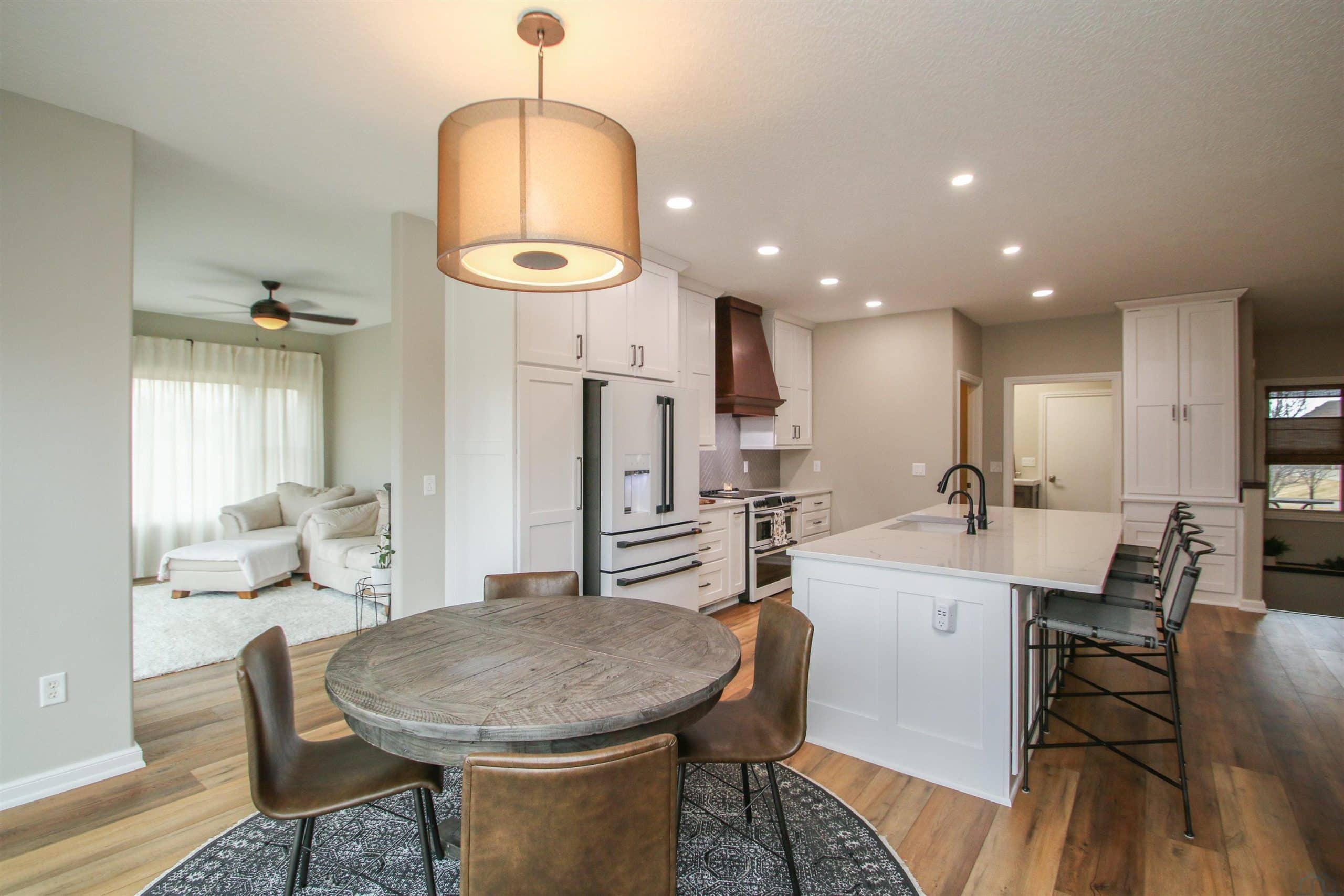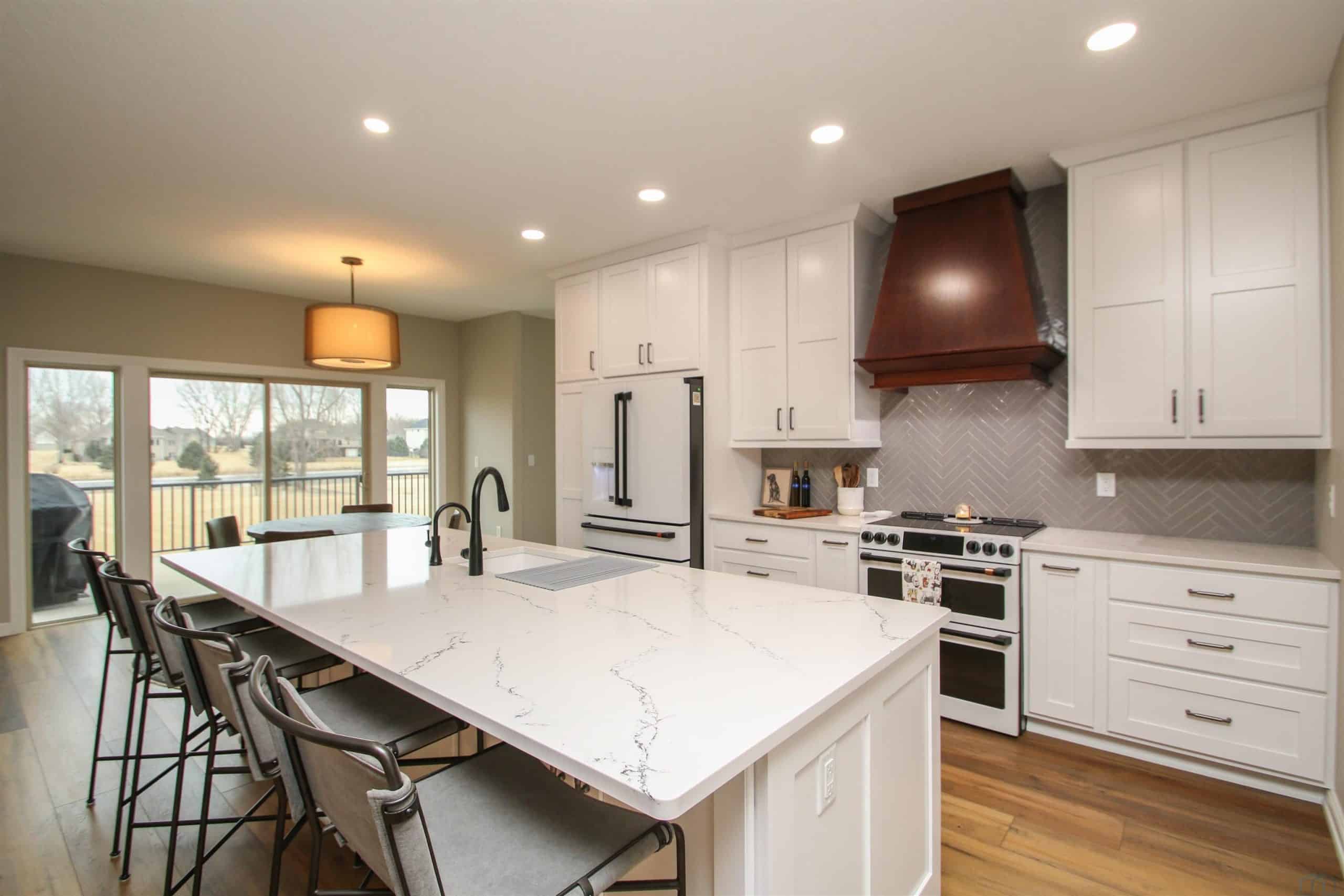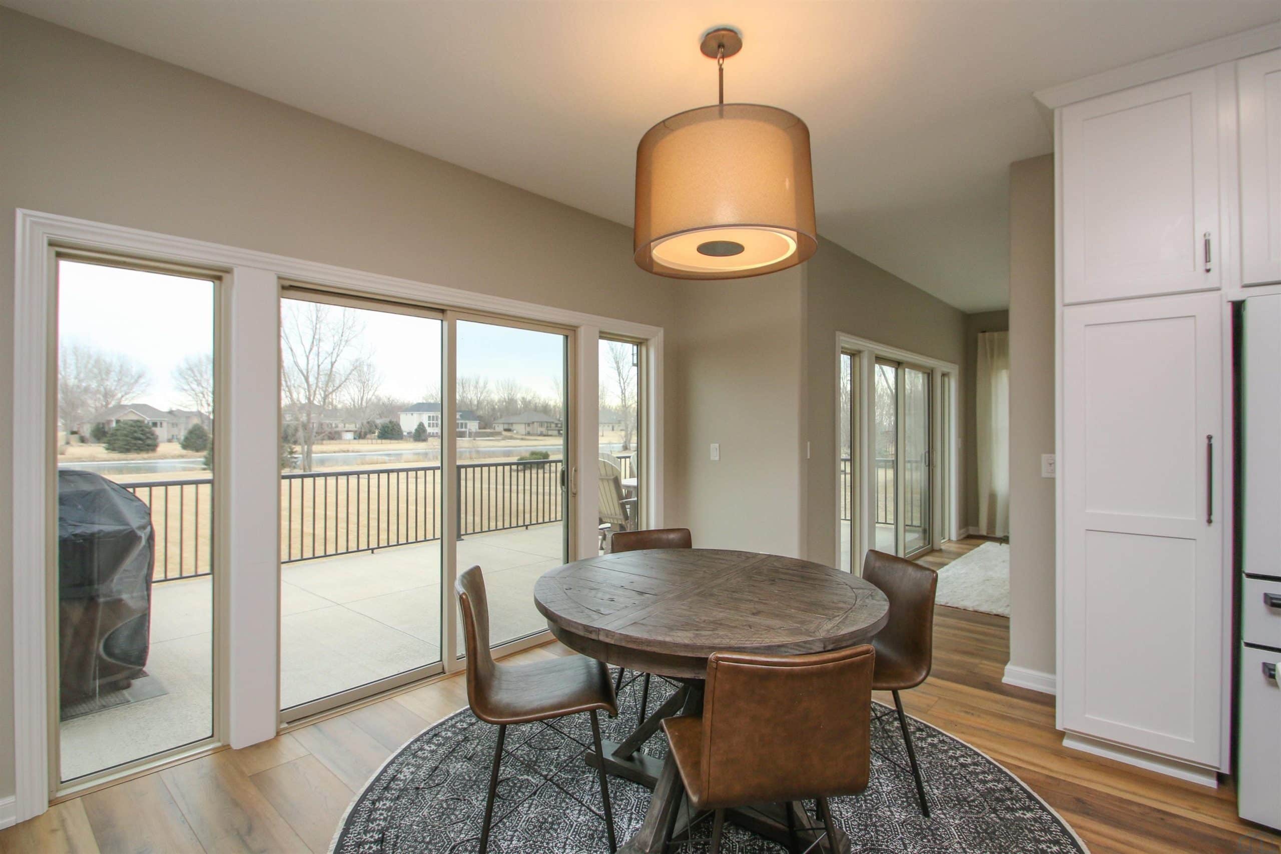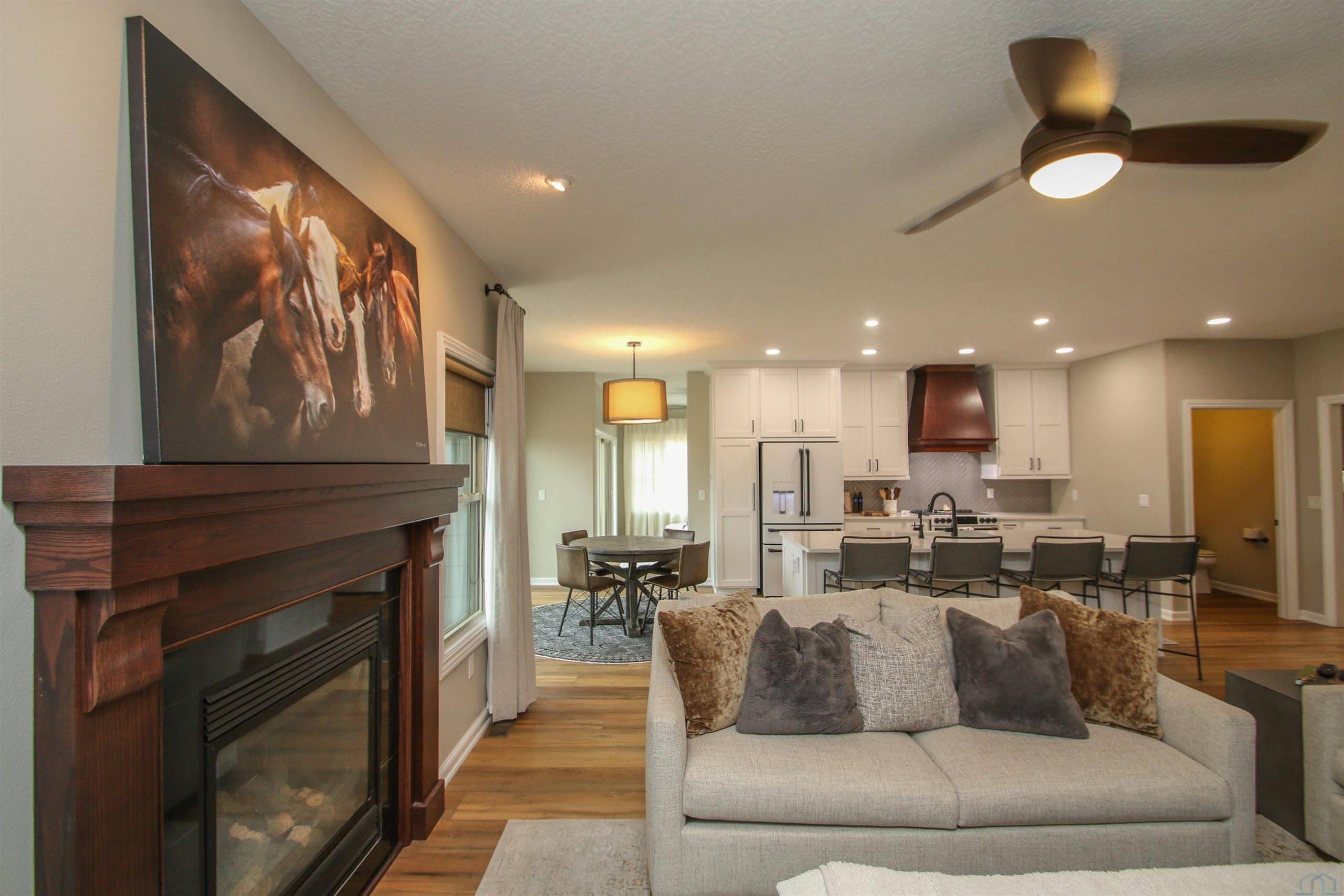 Prepare to be impressed by this beautifully updated home in the desirable Wynstone community with the pond in the back yard. With 5 bedrooms, 3.5 baths, and a thoughtfully designed open layout, this home offers the perfect balance of comfort, style, and scenic views. The welcoming foyer features engineered flooring and an elegant staircase, setting the tone for the quality found throughout. The great room is warm and inviting with a gas fireplace and flows seamlessly into the fully updated kitchen and dining area. The 2023 kitchen renovation showcases custom cabinetry, quartz countertops, stylish backsplash, center island, and GE Café appliances, ideal for both everyday living and entertaining. Step out from the dining area onto the concrete deck and enjoy peaceful pond views. A flexible family room offers space for a sitting area, playroom, or media room. The split-bedroom design provides privacy, while the primary suite features a beautifully remodeled bath with tile flooring, quartz double vanity, and a spacious walk-in shower. New trim, baseboards, and six-panel doors add a crisp, finished look throughout. The finished walkout lower level expands your living space with a large rec room, custom bar, corner fireplace, full bath, and two additional bedrooms, perfect for guests or hobbies. Walk out to the level backyard and enjoy direct pond access, covered patio, underground pet fence, and attached 10 x 12 storage shed. Additional highlights include an oversized 2-car garage, zero-entry access, permanent Christmas lighting, heat pump with dual gas system, Marathon water heater, and durable shingles (2014). Meticulously maintained and move-in ready, this exceptional home offers comfort, updates, and beautiful waterfront living.