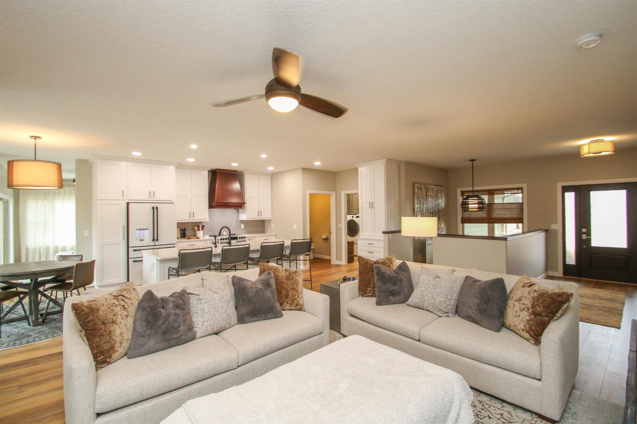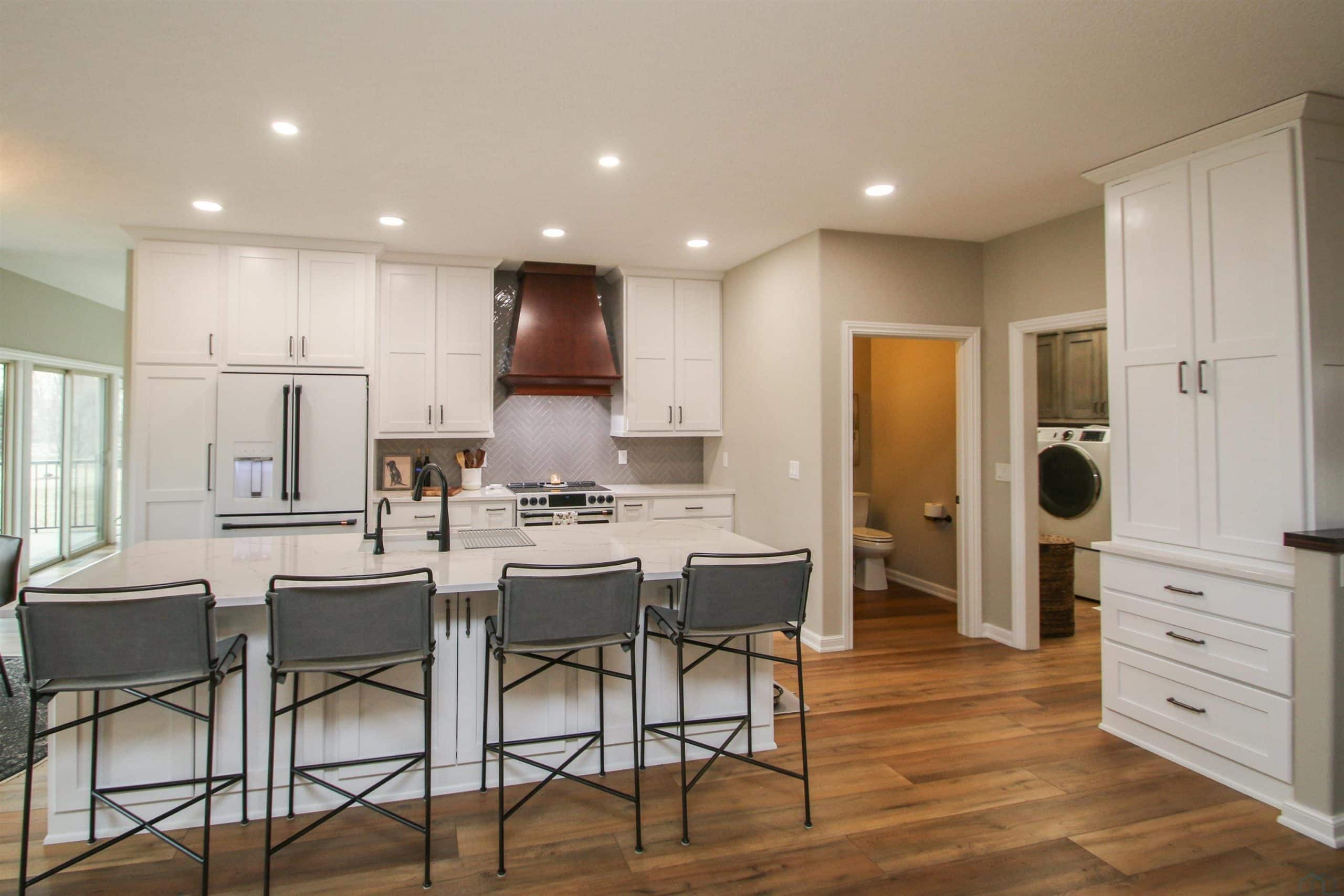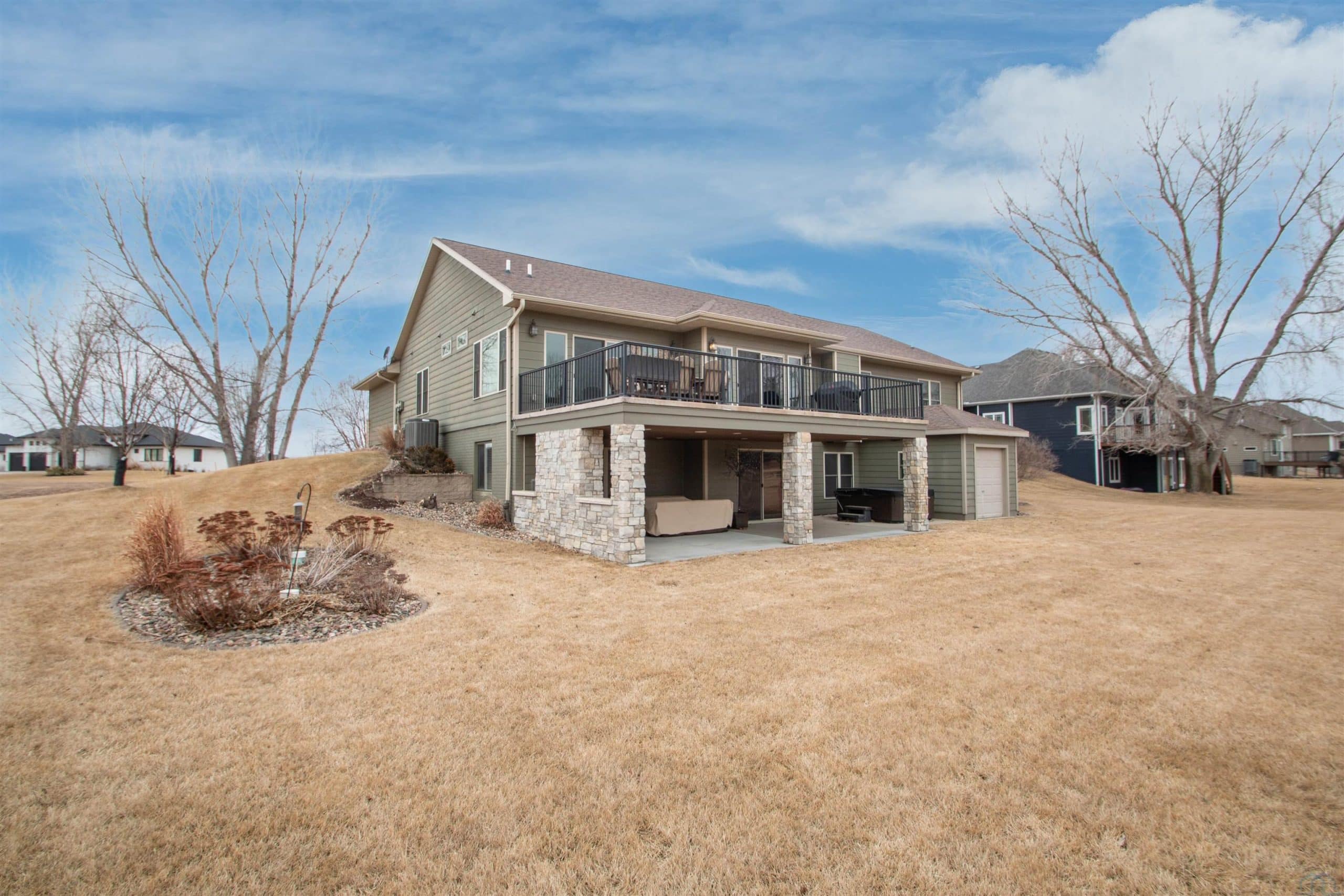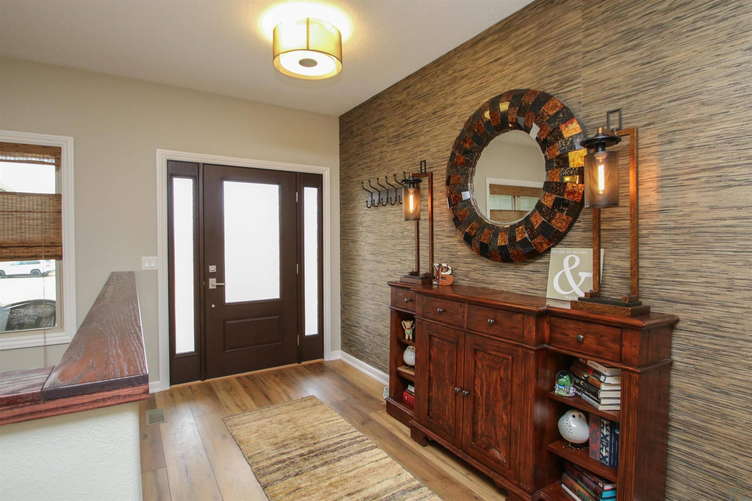 Prepare to be impressed by this beautifully updated home in the desirable Wynstone community with the pond in the back yard. With 5 bedrooms, 3.5 baths, and a thoughtfully designed open layout, this home offers the perfect balance of comfort, style, and scenic views. The welcoming foyer features engineered flooring and an elegant staircase, setting the tone for the quality found throughout. The great room is warm and inviting with a gas fireplace and flows seamlessly into the fully updated kitchen and dining area. The 2023 kitchen renovation showcases custom cabinetry, quartz countertops, stylish backsplash, center island, and GE Café appliances, ideal for both everyday living and entertaining. Step out from the dining area onto the concrete deck and enjoy peaceful pond views. A flexible family room offers space for a sitting area, playroom, or media room. The split-bedroom design provides privacy, while the primary suite features a beautifully remodeled bath with tile flooring, quartz double vanity, and a spacious walk-in shower. New trim, baseboards, and six-panel doors add a crisp, finished look throughout. The finished walkout lower level expands your living space with a large rec room, custom bar, corner fireplace, full bath, and two additional bedrooms, perfect for guests or hobbies. Walk out to the level backyard and enjoy direct pond access, covered patio, underground pet fence, and attached 10 x 12 storage shed. Additional highlights include an oversized 2-car garage, zero-entry access, permanent Christmas lighting, heat pump with dual gas system, Marathon water heater, and durable shingles (2014). Meticulously maintained and move-in ready, this exceptional home offers comfort, updates, and beautiful waterfront living.
