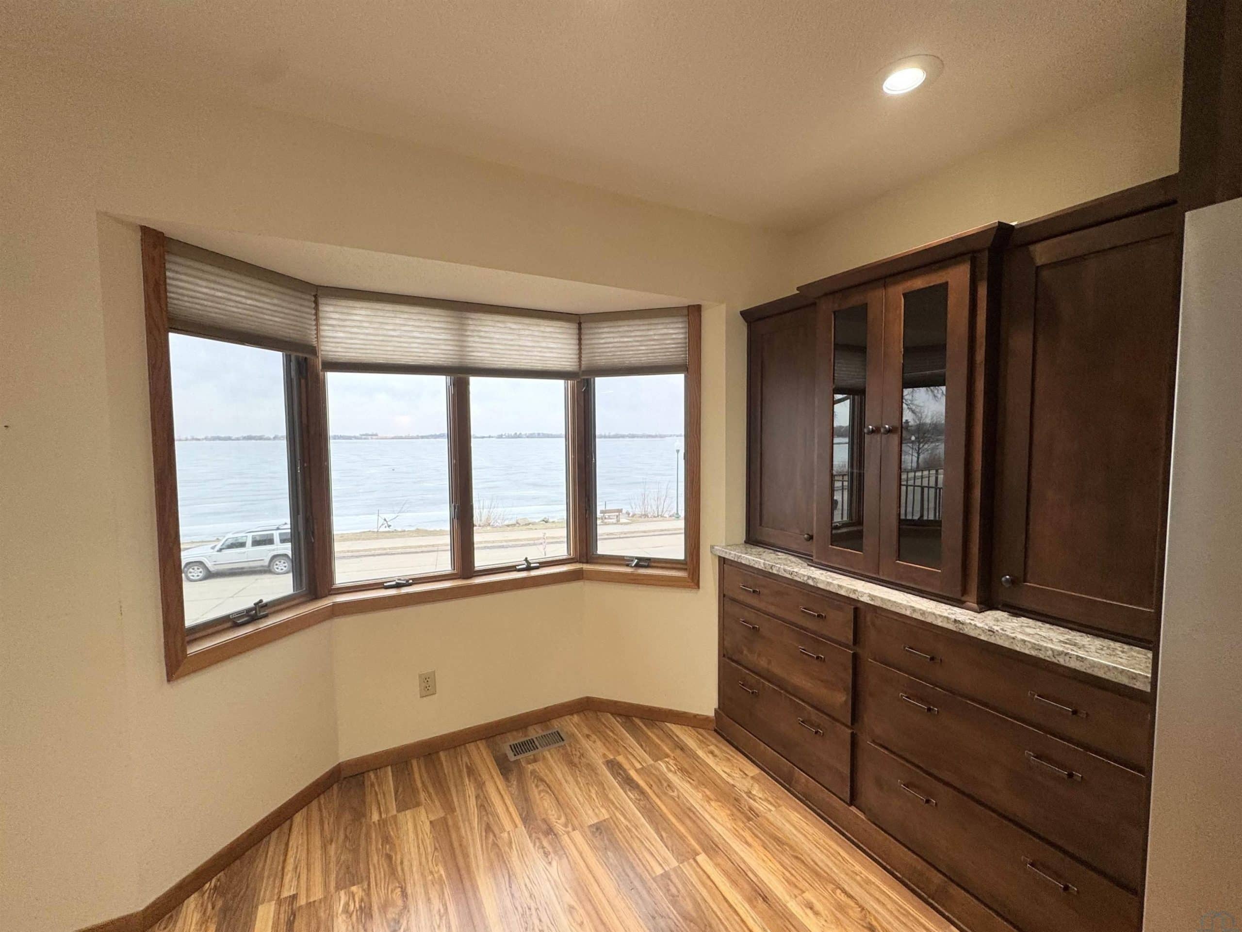 Brick 2 bedroom 1.75 bath with 1271 sq.ft. upper-level condominium. Has both elevator and steps, a 6' x 18' patio that offers great views of Lake and really close to where fireworks are shot off. Kitchen & bathroom cabinets have been upgraded from Original ones, these have soft-close hinges, and some nice pull-out drawers and a real attractive look. Newer appliances in the kitchen are included. Main bedroom is good size and has its own bath with double sinks and lots counter space and storage plus a good size walk in closet. This building has a private courtyard shared with owners of this building. Taller crawlspace basement with storage space. Gives you lots of extra room to keep many of your keepsake items you don't want to part with. Secured entry. 2 car garage.