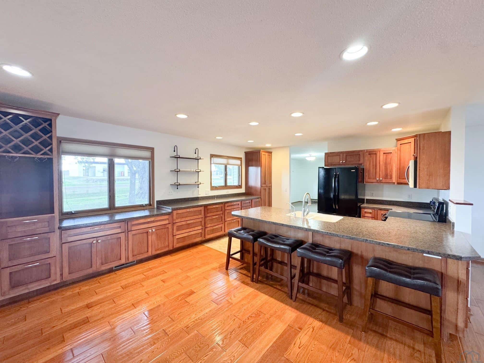 Step inside this inviting 4 bedroom ranch-style home that blends comfort, functionality, and timeless design. The open-concept main level features rich hardwood floors and recessed lighting that complement the custom kitchen cabinetry, expansive counter space, and large island with seating â perfect for everyday living or entertaining. The home offers generously sized bedrooms, each with ample closet storage and natural light. The main bath showcases a modern walk-in shower, updated fixtures, and warm tile finishes. A convenient main-floor laundry and half bath provide added practicality to your daily routine. Downstairs, youâll find a spacious family room, bedroom and office with recessed lighting, ready to add the flooring to your liking. Seller is offering a $10,000 flooring allowance. Set on a peaceful lot 3 blocks from school. With a welcoming neighborhood feel, this home is the perfect mix of move-in ready comfort and opportunity to add your own personal touch.