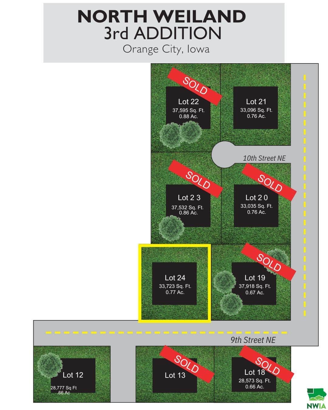 North Weiland is a subdivision located just north of Orange City along K64, offering a quiet, peaceful setting. Paved roads and street lighting enhance property value, while restrictive covenants help preserve the neighborhood's integrity and character. Highlights include: *Large Lots *Paved Roads *Within City limits *Outbuildings permitted